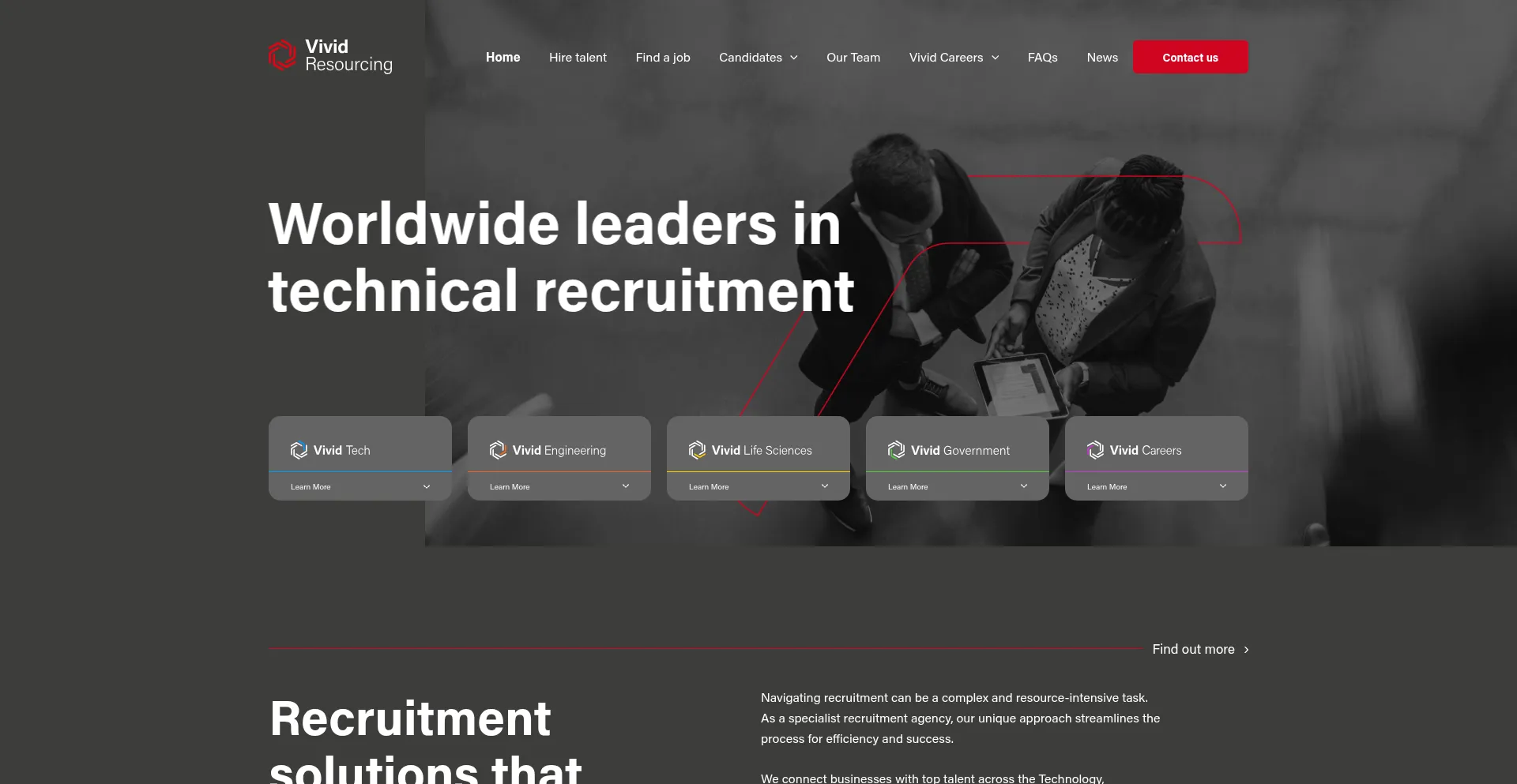 Vivid Resourcing is a specialist technical recruitment agency that connects elite talent with great jobs in Engineering, Tech, Life Sciences, and Public Sector.