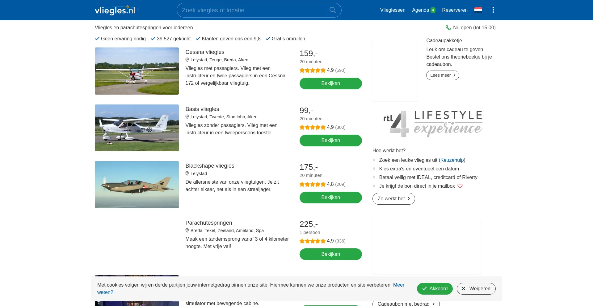 Boek een vliegles voor jezelf of als cadeau, ervaring is niet nodig. Vlieglessen, tandemsprongen, vliegsimulatoren en andere vliegbelevenissen.