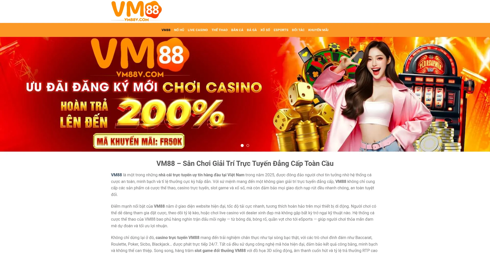 VM88 là một trong những nhà cái trực tuyến uy tín hàng đầu tại Việt Nam trong năm 2025, được đông đảo người chơi tin tưởng nhờ hệ thốn...