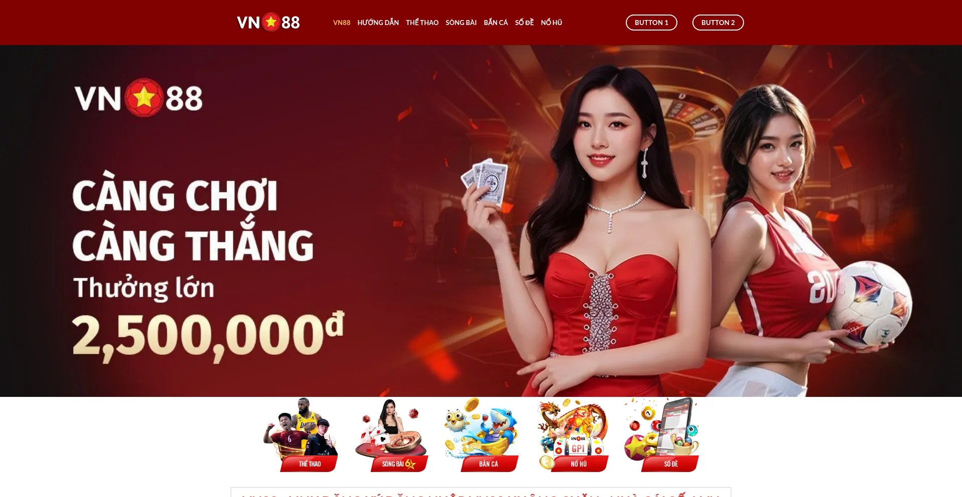 VN88 – Nền tảng cá cược trực tuyến hàng đầu Việt Nam, cung cấp kho game đa dạng, bảo mật tuyệt đối và trải nghiệm giải trí đẳng cấ...