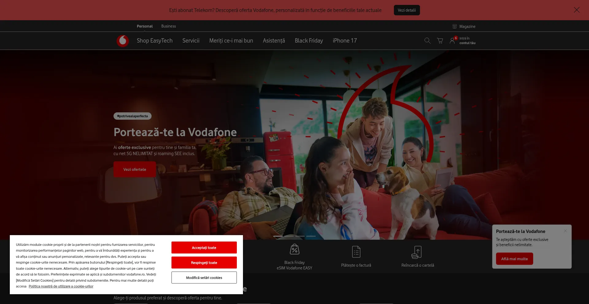 该网站实现符合GDPR或CCPA等隐私法规的cookie同意机制。这表明 vodafone.ro 遵守数据保护标准并为用户提供对个人数据收集实践的控制。
