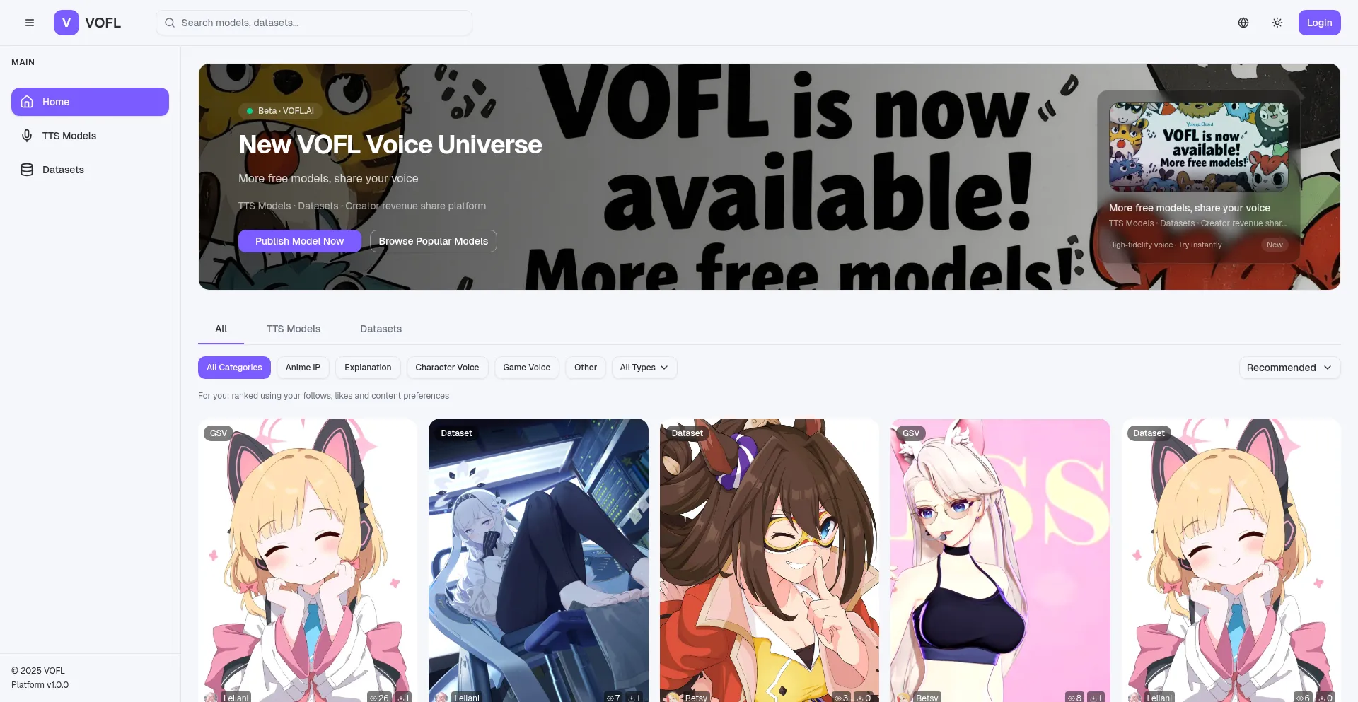 Professional VOFL model and dataset sharing platform, dedicated to gpt-sovits models and datasets.
