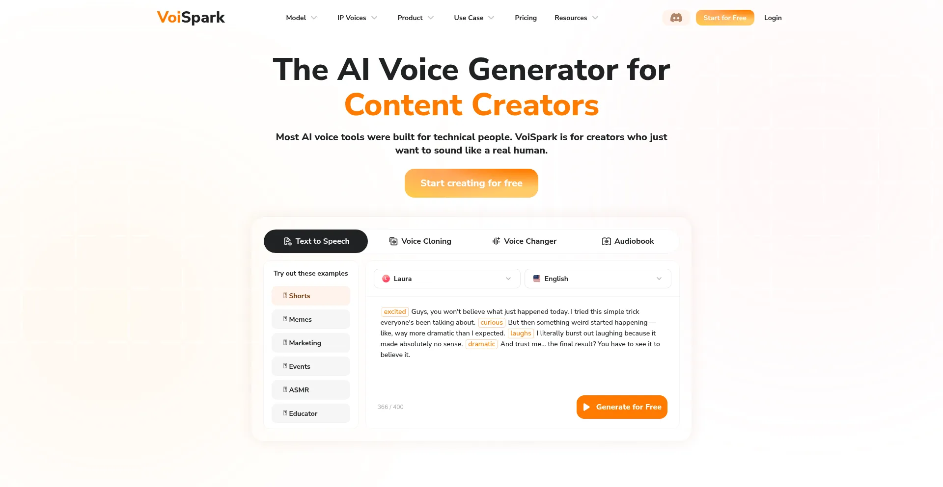 VoiSpark: AI Voice Generator Platform | Text-to-Speech & Voice Cloning