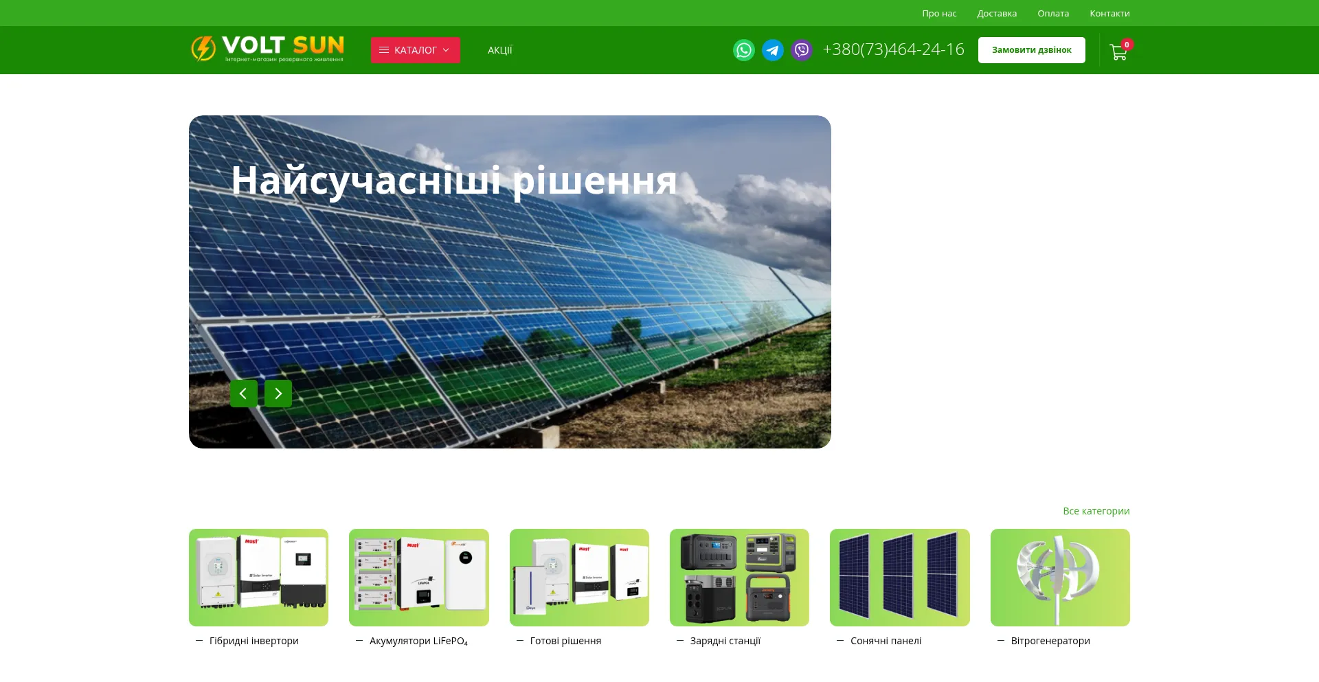 Інтернет-магазин гібридних інверторів, акумуляторів, сонячних панелей