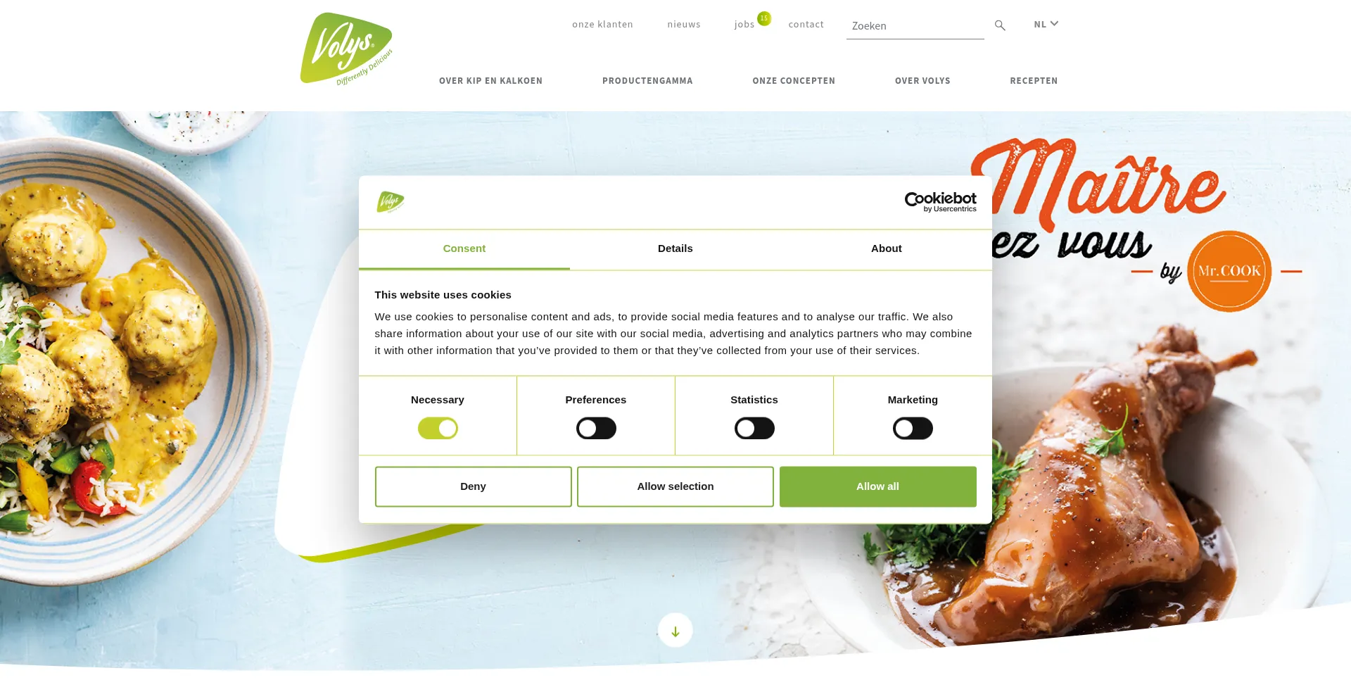 该网站实现符合GDPR或CCPA等隐私法规的cookie同意机制。这表明 volys.be 遵守数据保护标准并为用户提供对个人数据收集实践的控制。