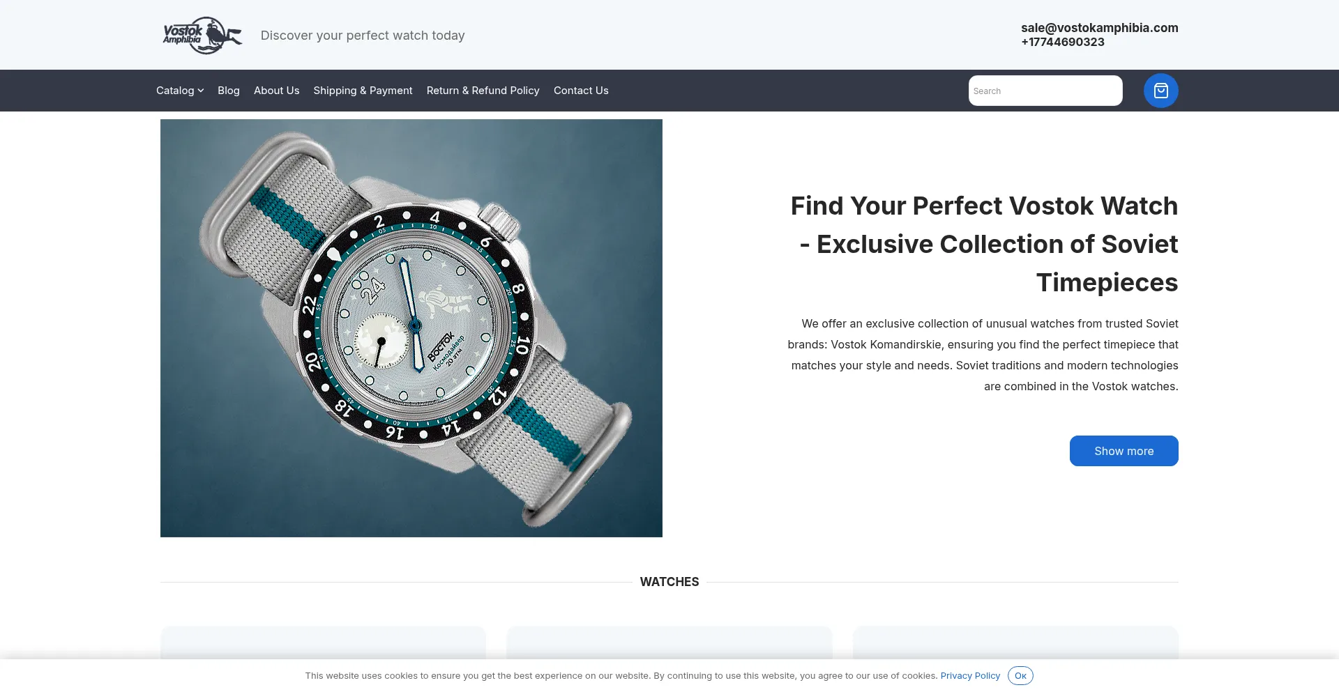 分析表明 vostokamphibia.com 作为电子商务平台运营,促进商品或服务的在线交易。该网站实现了购物车功能、支付处理系统和产品目录功能,这些是商业零售运营的典型特征。