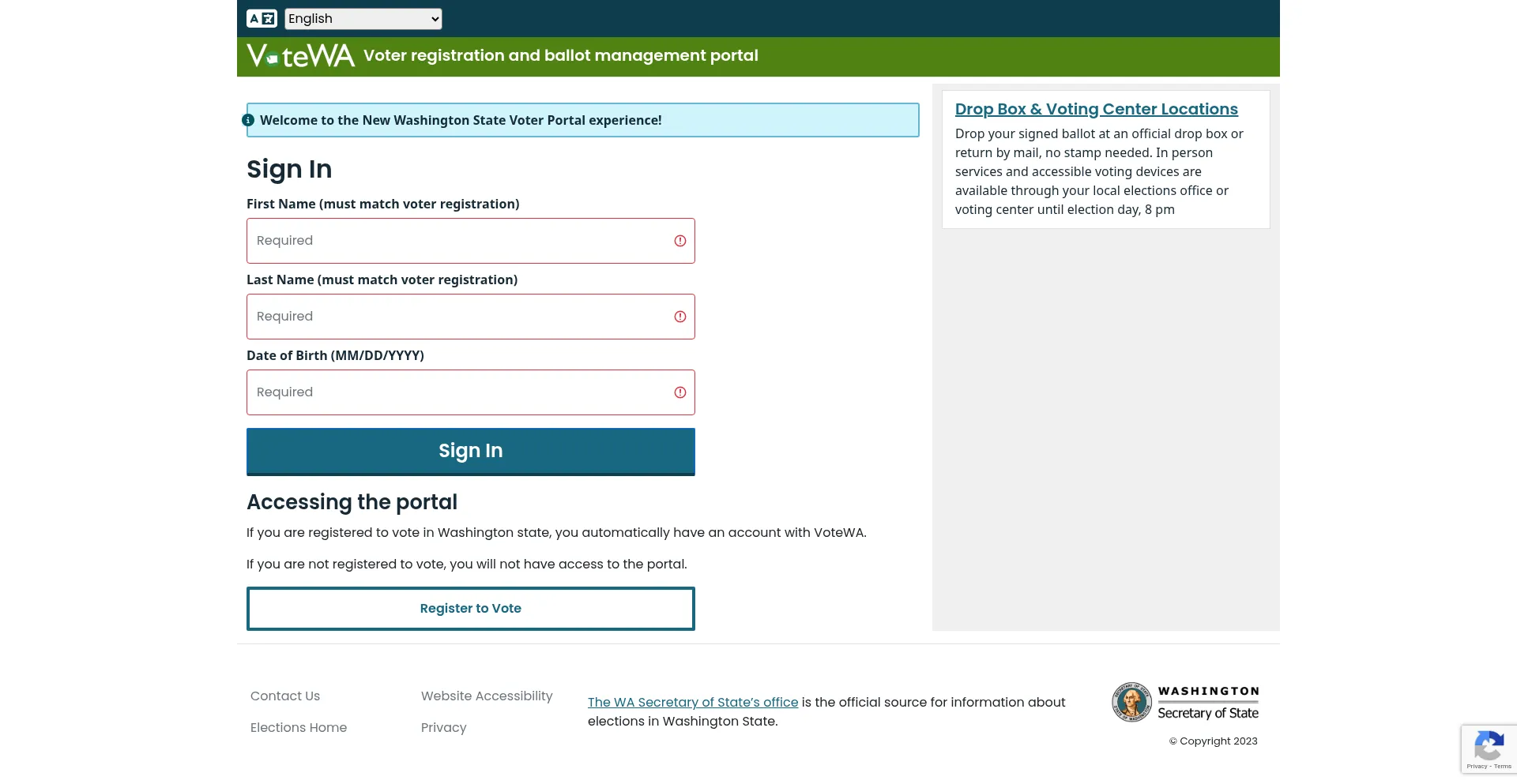 该网站实现数据收集表单,请求个人信息,包括姓名、电子邮件地址、电话号码或其他敏感详细信息。用户应验证 votewa.gov 的合法性并在提交个人数据前查看隐私政策。