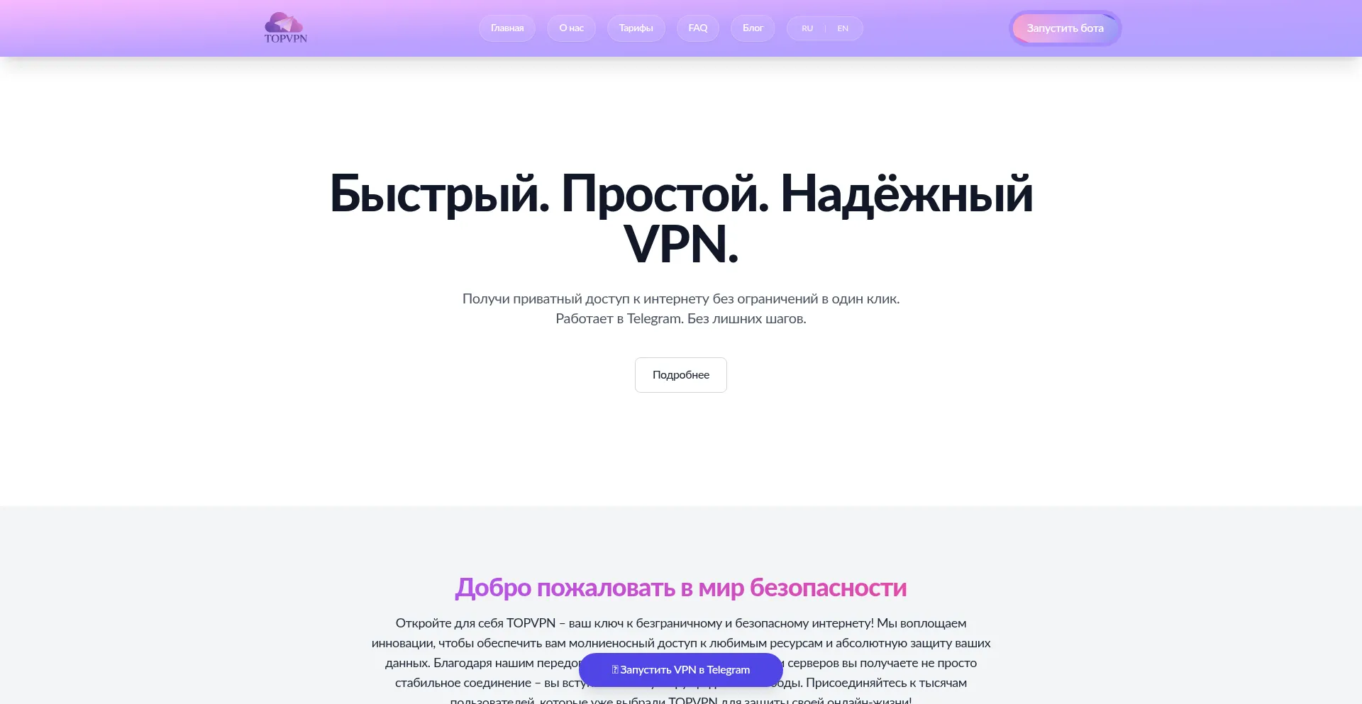 TOPVPN SHOP — VPN через Telegram-бот | Быстрый доступ, безопасность, YouTube без рекламы