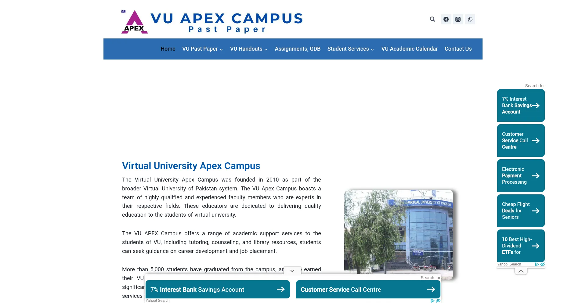 The Virtual University Apex Campus was founded in 2010 as part of the broader Virtual University of Pakistan system. The VU Apex Campus boasts a team of