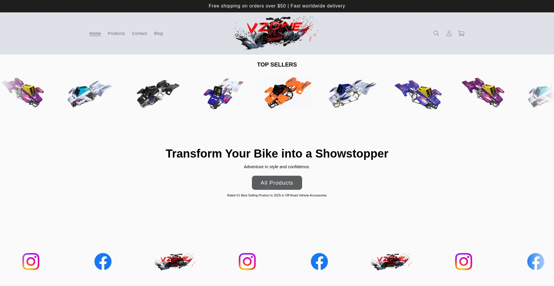 网站上存在社交媒体链接表明 vzonemotors.com 在社交媒体上维护官方账户,这是可信度和参与度的积极信号。