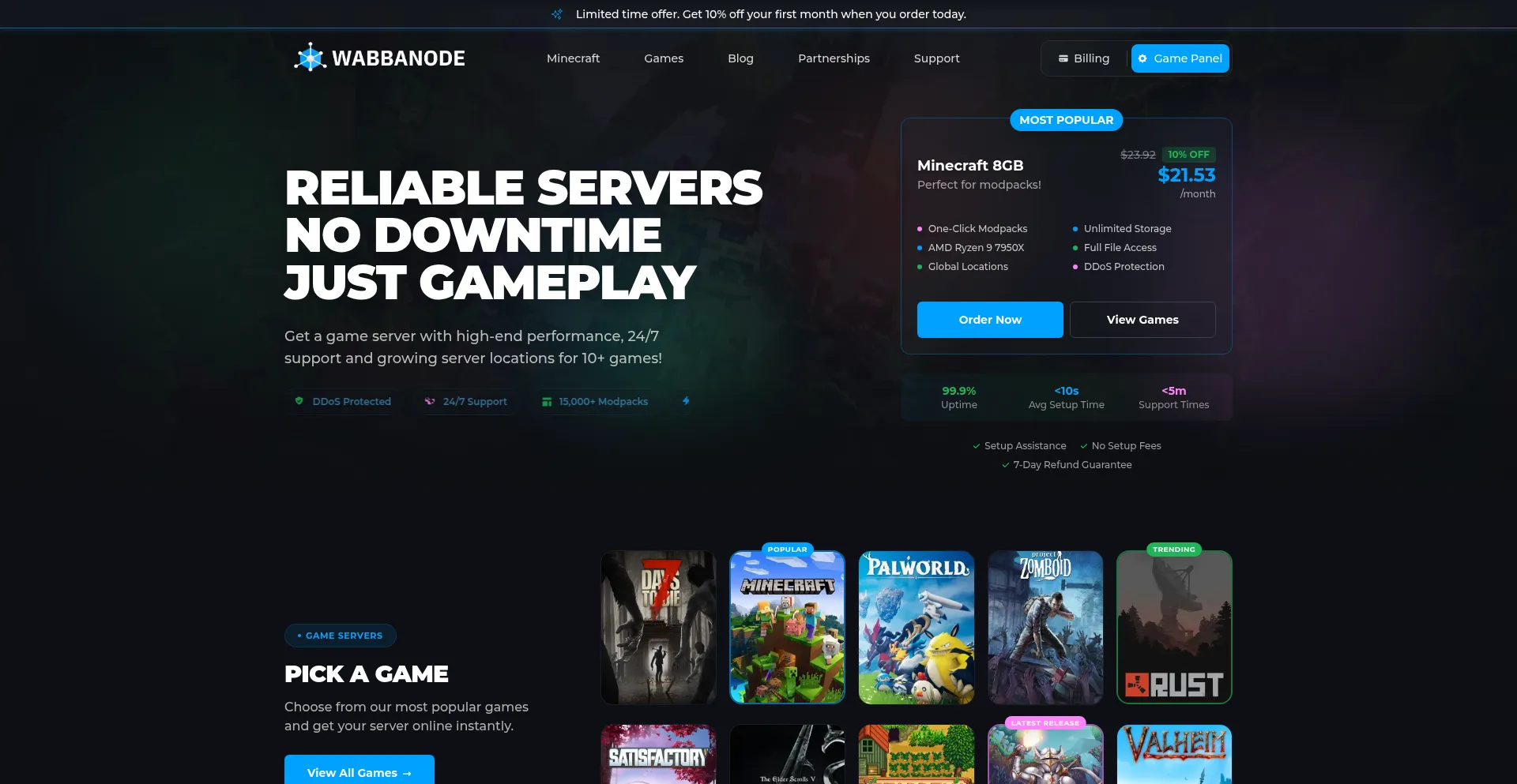 Game server hosting for as little as $1.49, complete with instant setup, 24/7 support, 100% uptime and full DDoS protection.