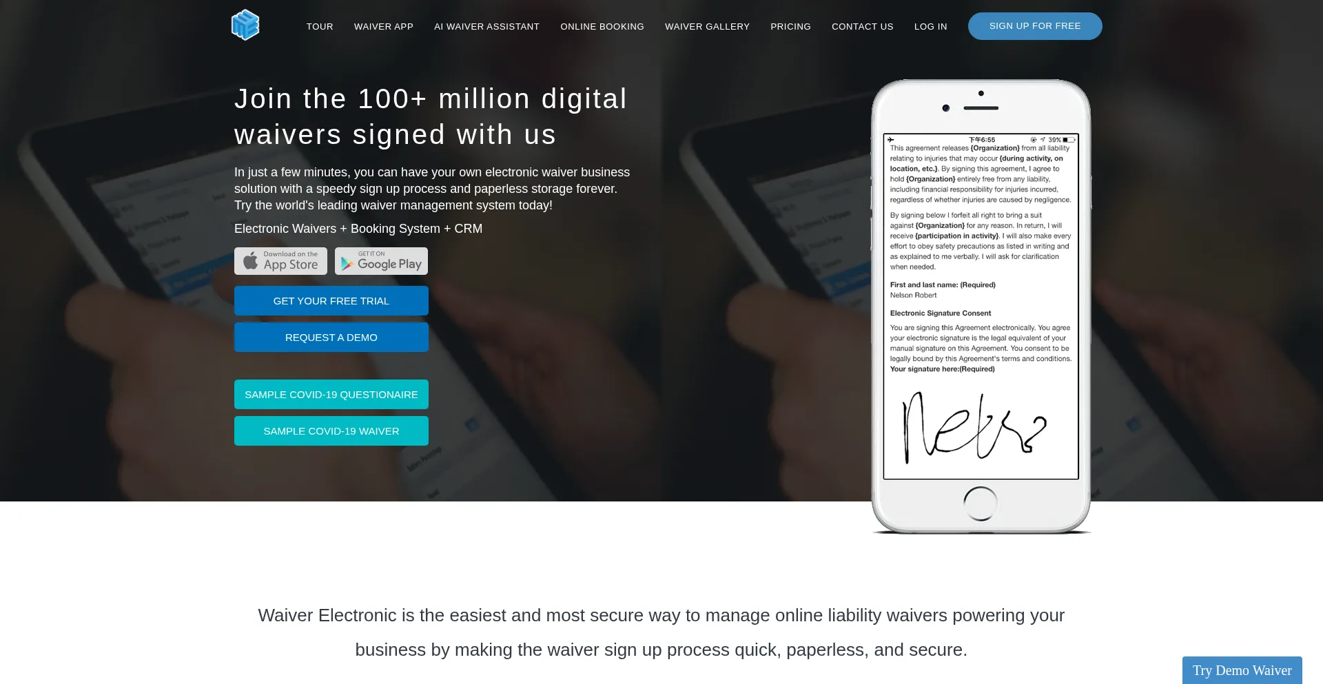 WaiverElectronic offers an online waiver platform with tools to help you develop your business. Use our waiver app to sign waivers. Try us for free today!