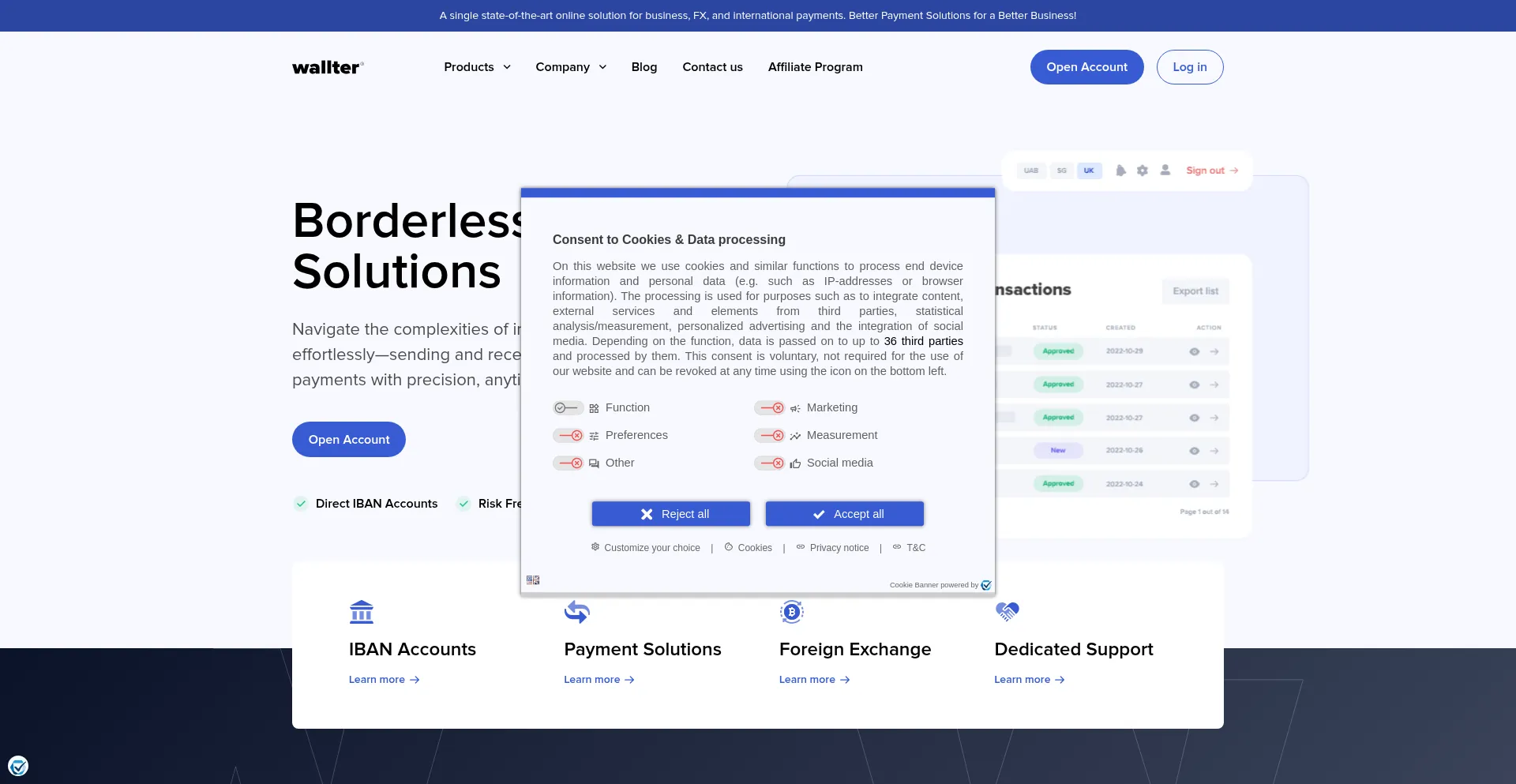 该网站实现符合GDPR或CCPA等隐私法规的cookie同意机制。这表明 wallter.com 遵守数据保护标准并为用户提供对个人数据收集实践的控制。