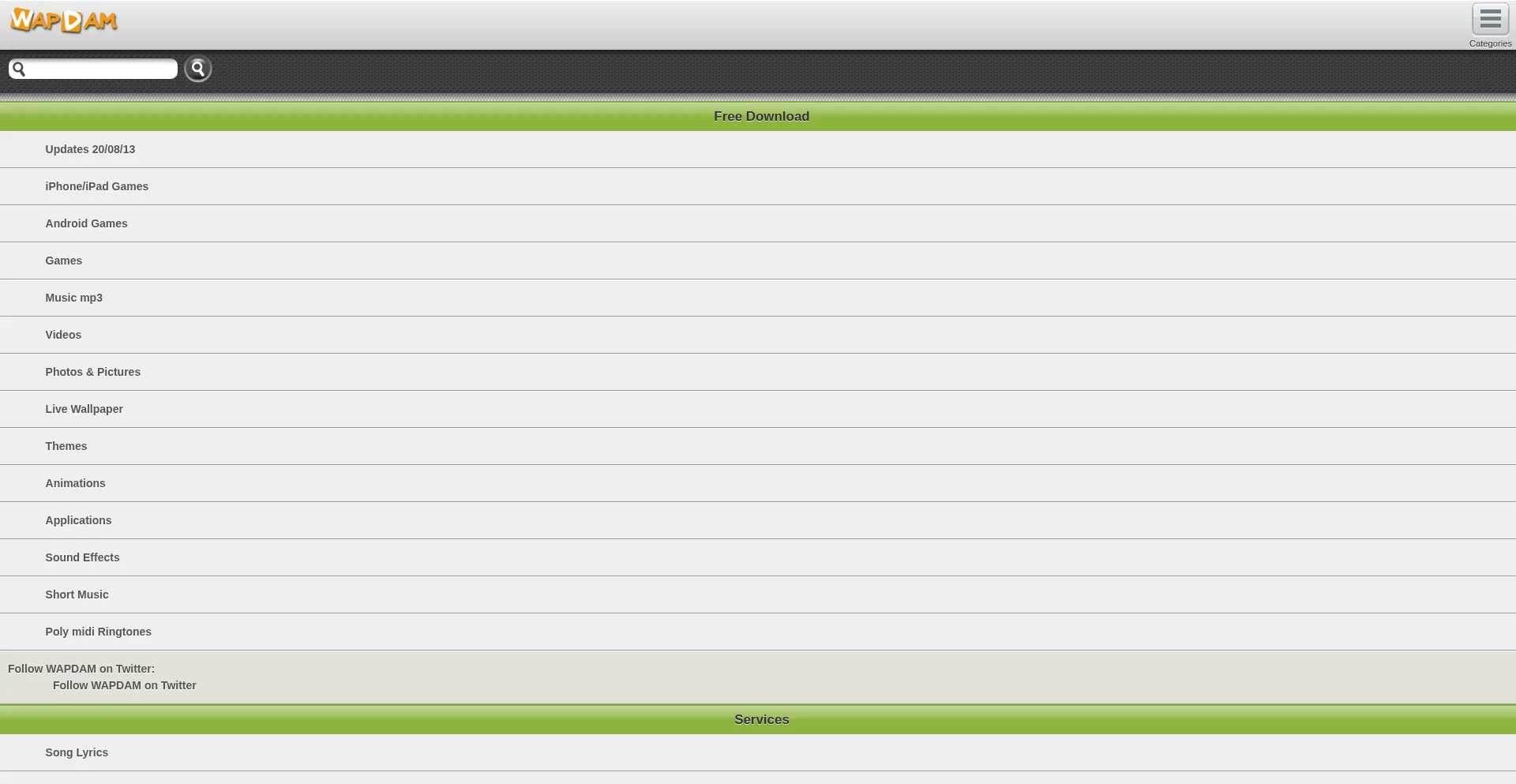 WAPDAM offers huge collection of mp3 ringtones, mobile games, phone apps, live wallpapers, themes, mobile videos, video clips and many more for free!