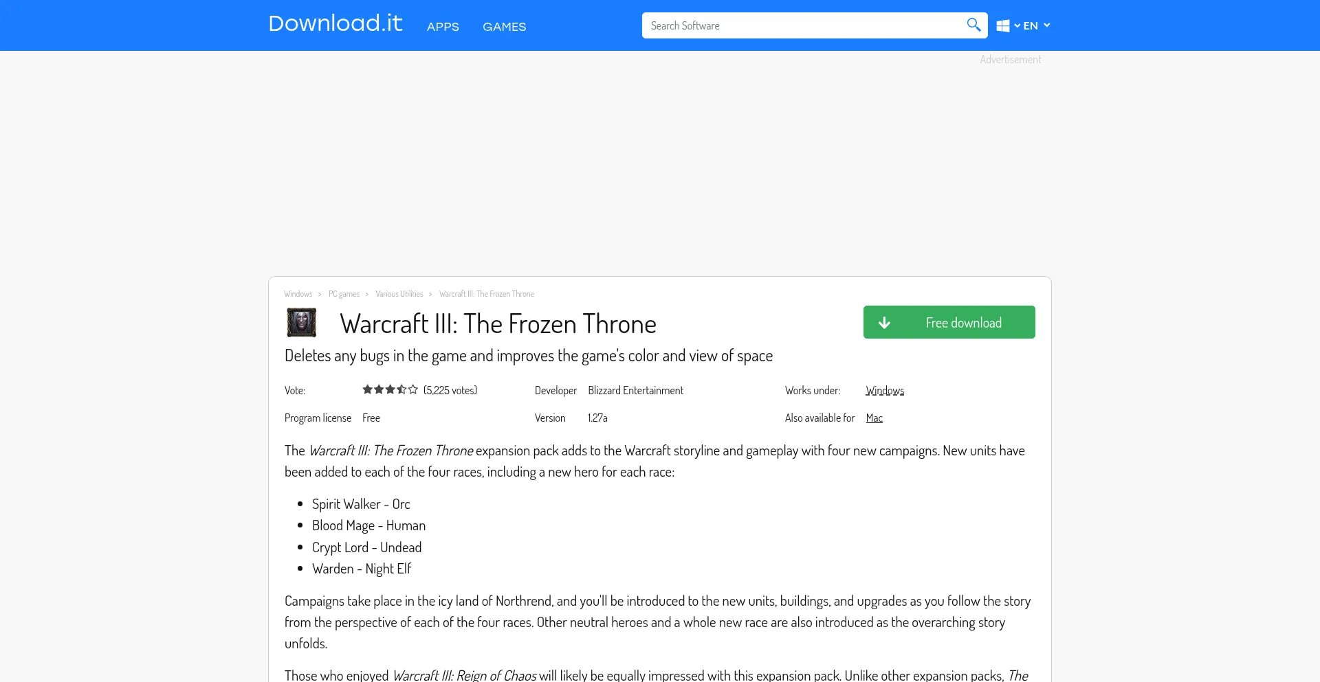 Warcraft III: The Frozen Throne - Free Download