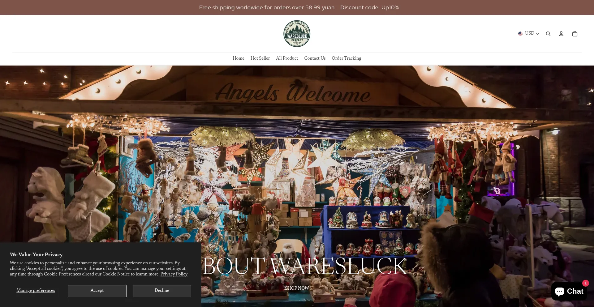 该网站实现符合GDPR或CCPA等隐私法规的cookie同意机制。这表明 waresluck.com 遵守数据保护标准并为用户提供对个人数据收集实践的控制。