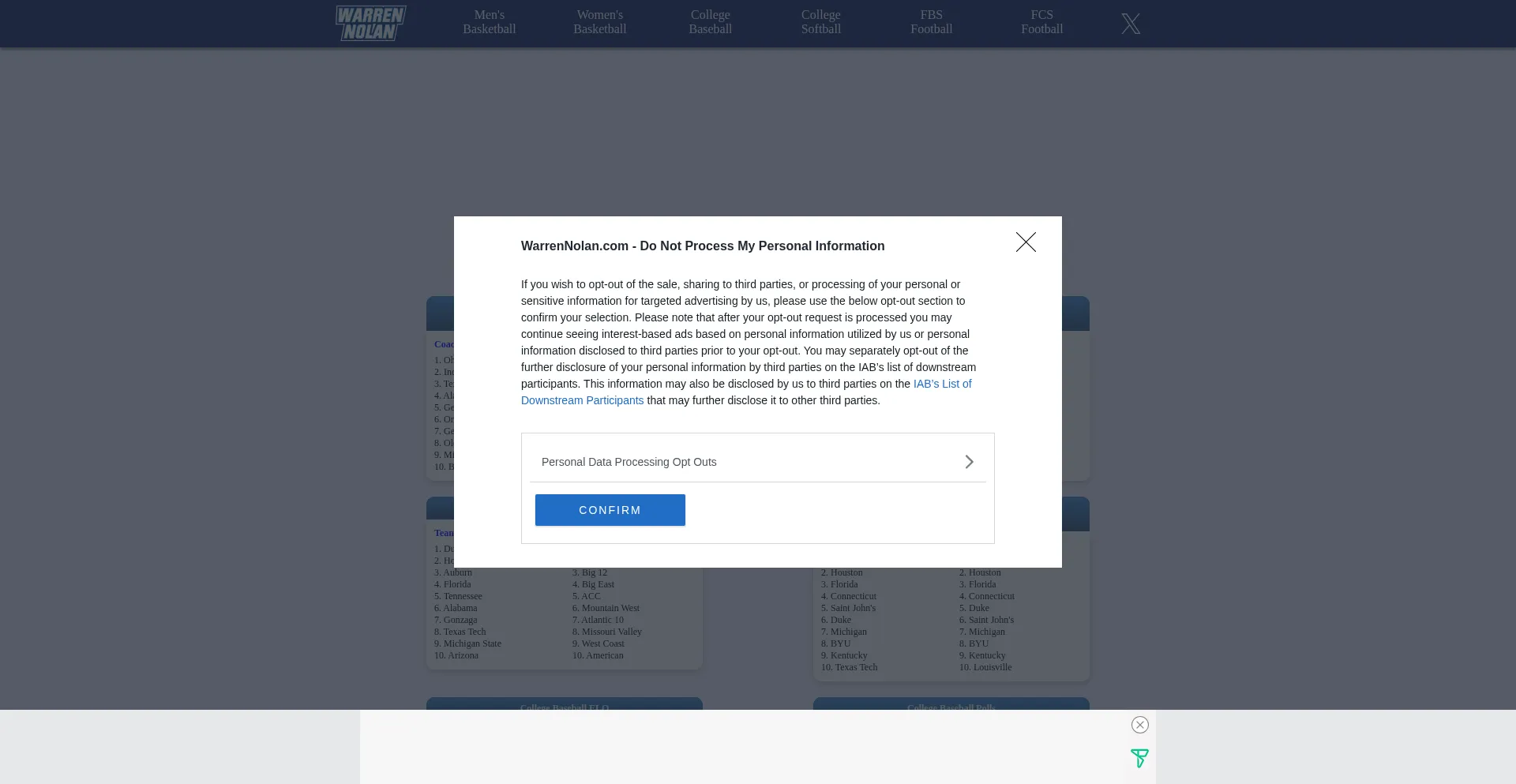 NCAA College Sports Schedules, Rankings, NET, RPI, Polls, Scores, Stats | WarrenNolan.com