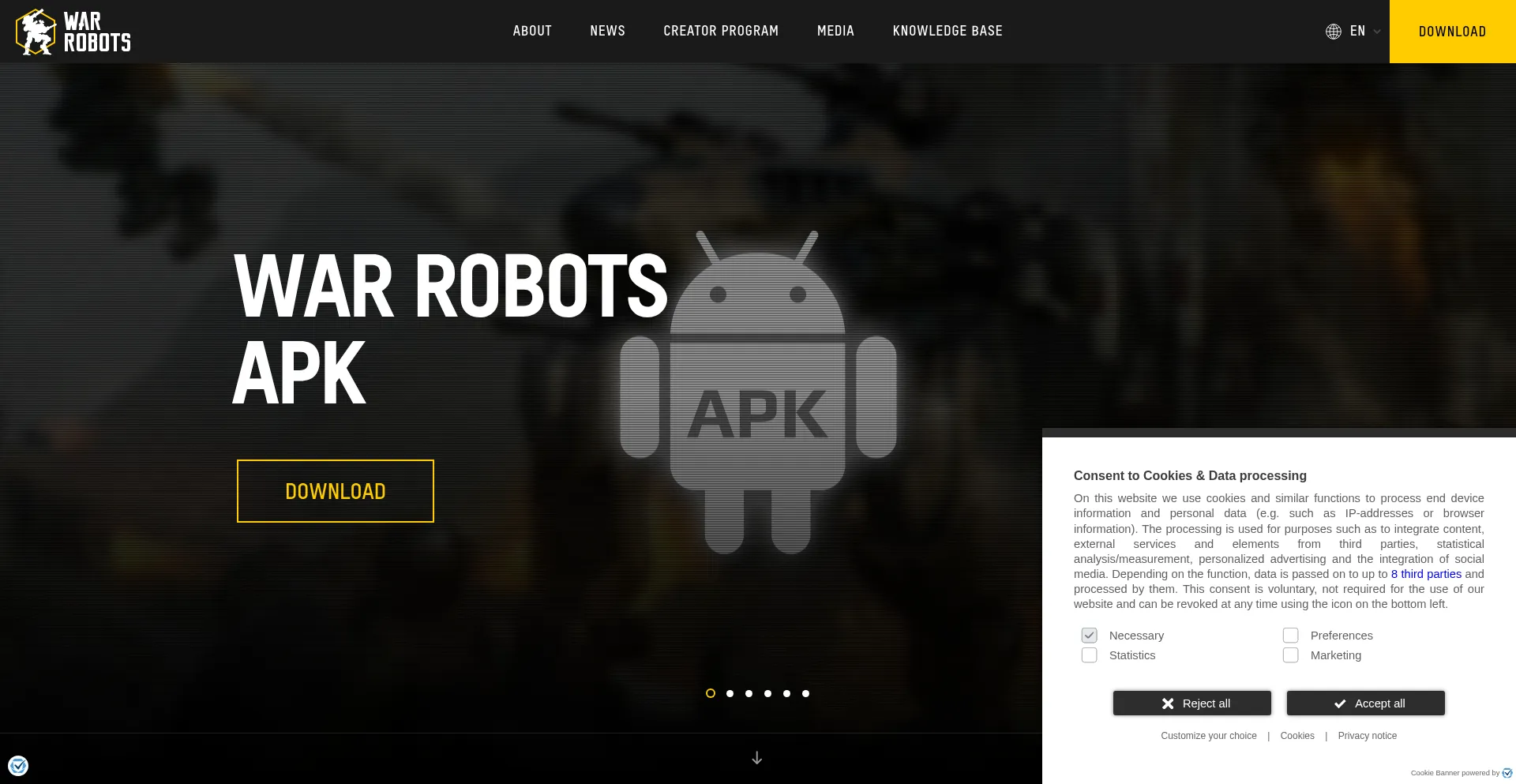 该网站实现符合GDPR或CCPA等隐私法规的cookie同意机制。这表明 warrobots.com 遵守数据保护标准并为用户提供对个人数据收集实践的控制。