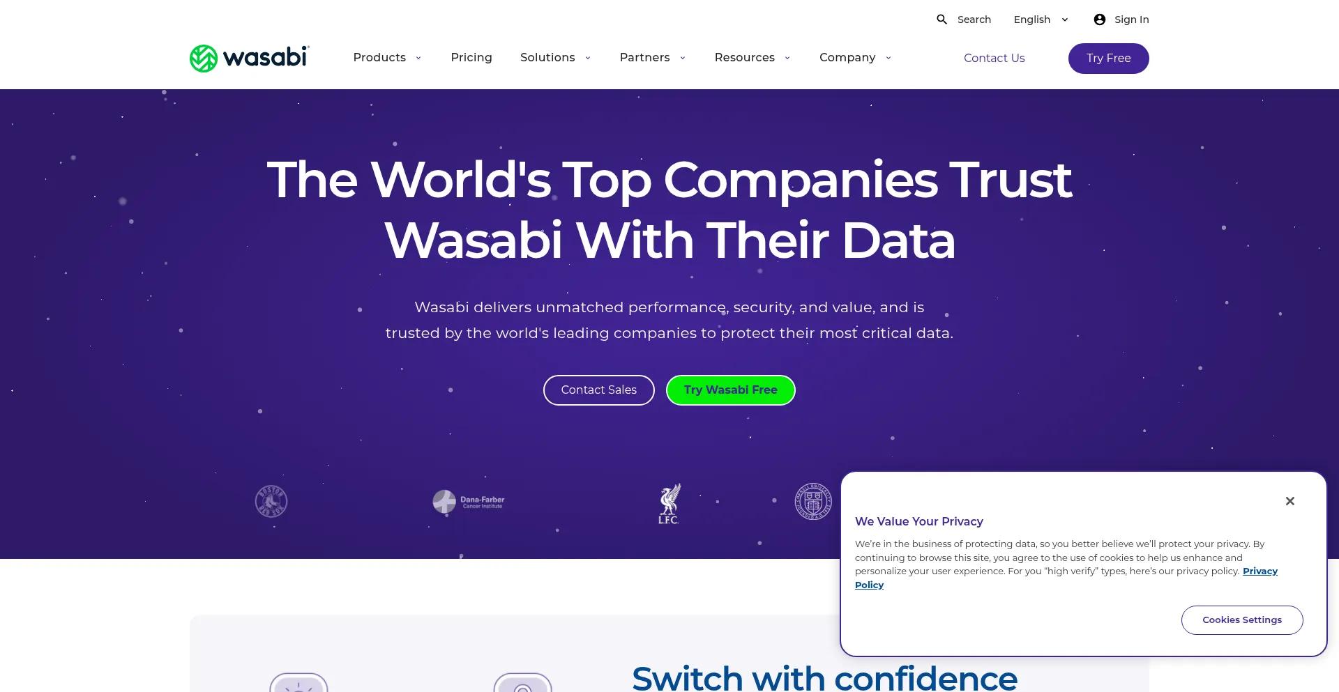 该网站实现符合GDPR或CCPA等隐私法规的cookie同意机制。这表明 wasabi.com 遵守数据保护标准并为用户提供对个人数据收集实践的控制。