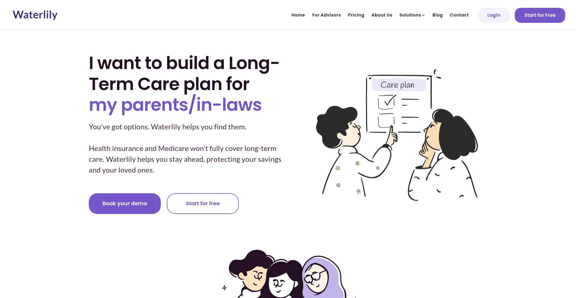 Long-term care planning is easy with Waterlily. Used by financial professionals and families, our AI technology can predict future long-term care costs, build personalized care ...