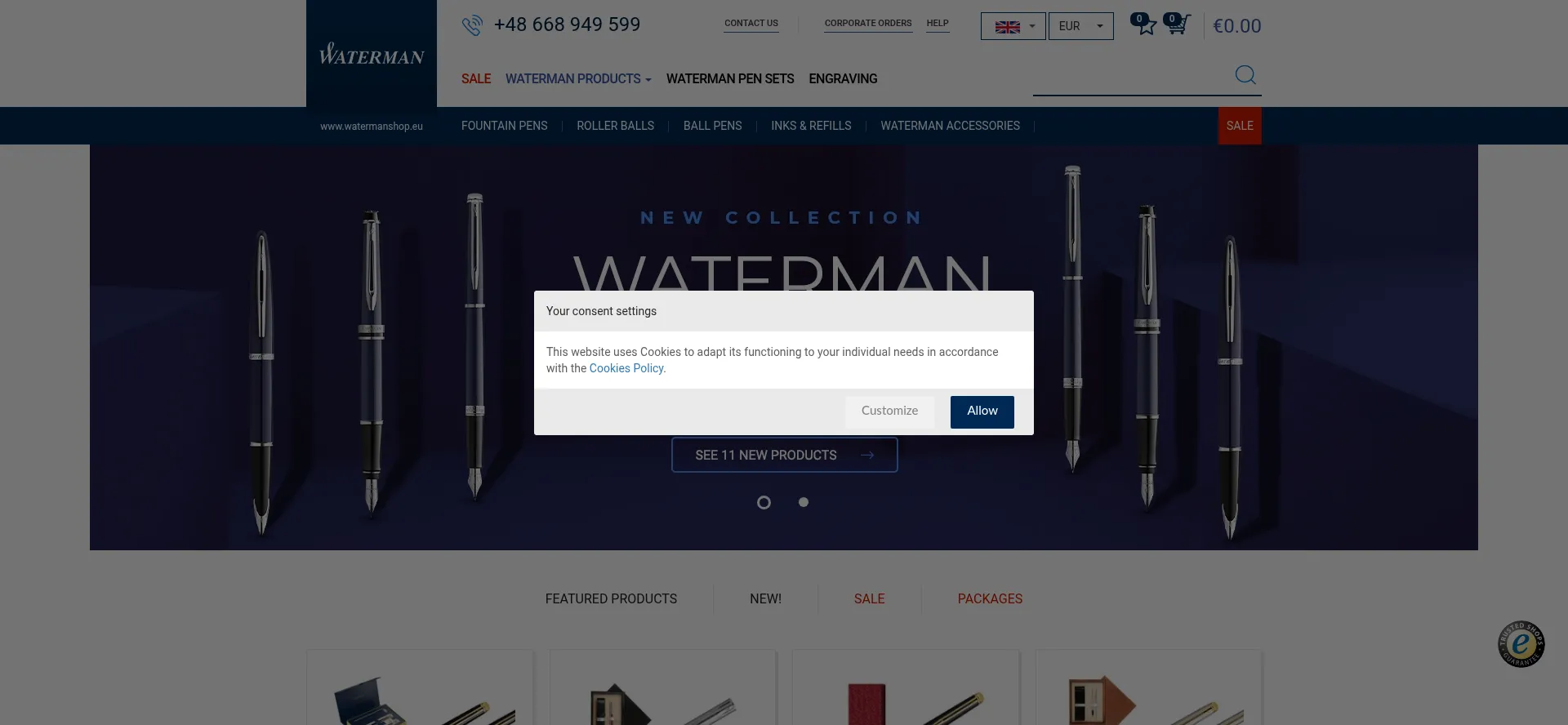 WatermanShop - original Waterman products. Waterman Fountain Pens, Waterman Rollerball Pens, Waterman pens, Waterman pencils, Waterman inks, cartridges and Waterman refills