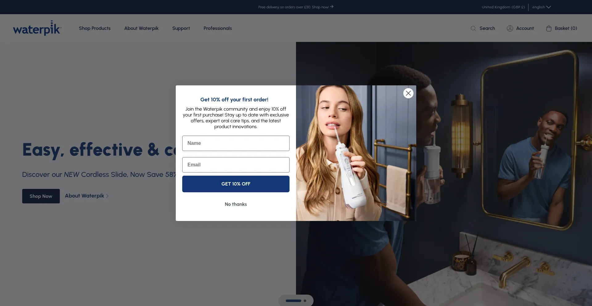 网站 waterpik.co.uk 使用免费电子商务平台解决方案,这可能表明成本意识运营,但也可能暗示与企业级解决方案相比在安全功能、客户支持或高级功能方面的限制。