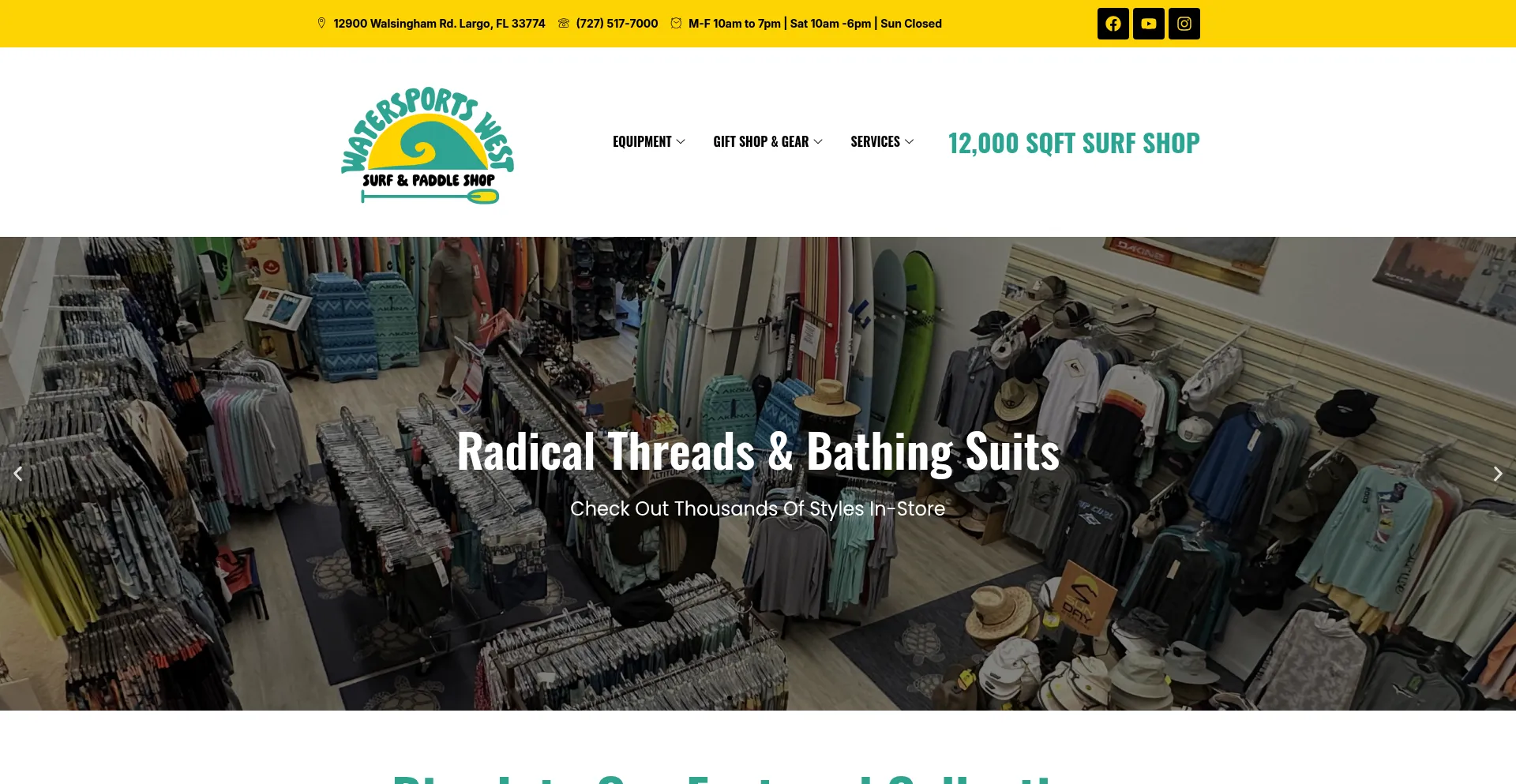 Watersports West surf shop in Largo Florida serving Tampa Bay, St Petersburg. Cabrinha gear, paddleboards, kayaks, wakeboards, and apparel.