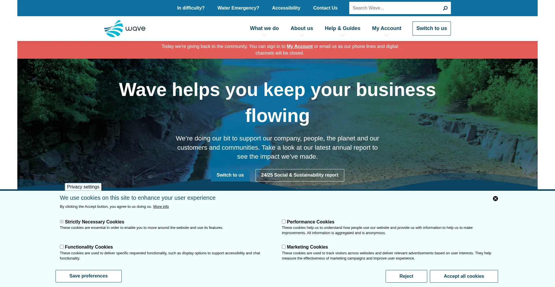 Wave Utilities provides water solutions for businesses across the UK. Save time and money with simple, straightforward services.