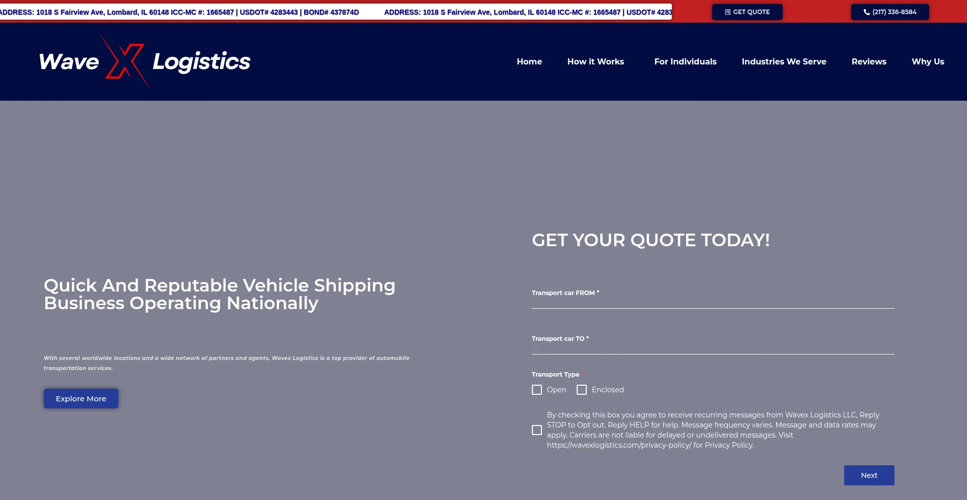 该网站实现数据收集表单,请求个人信息,包括姓名、电子邮件地址、电话号码或其他敏感详细信息。用户应验证 wavexlogistics.com 的合法性并在提交个人数据前查看隐私政策。