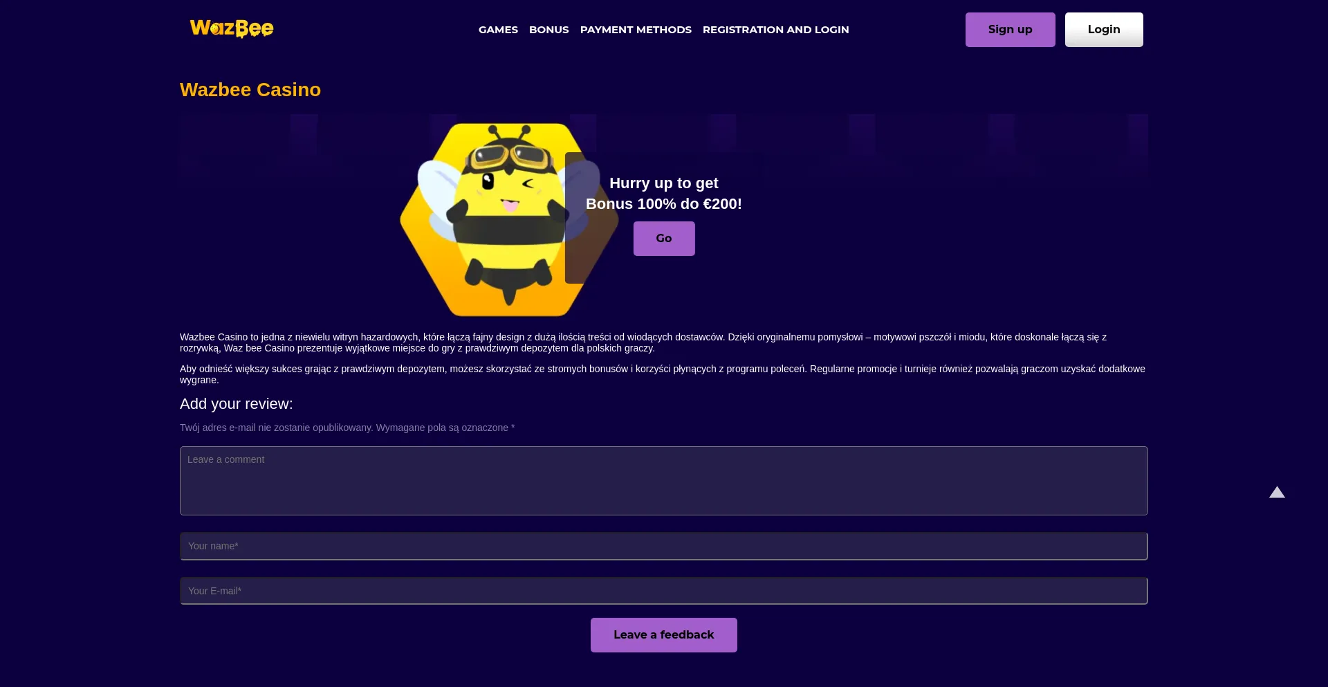 Wazbee Casino [PL] Login | Bonus 100% do €200