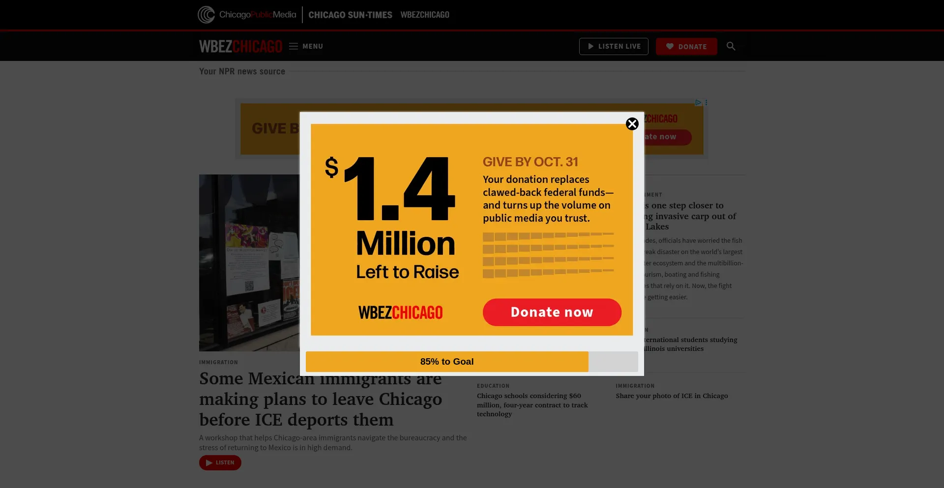 该网站实现数据收集表单,请求个人信息,包括姓名、电子邮件地址、电话号码或其他敏感详细信息。用户应验证 wbez.org 的合法性并在提交个人数据前查看隐私政策。