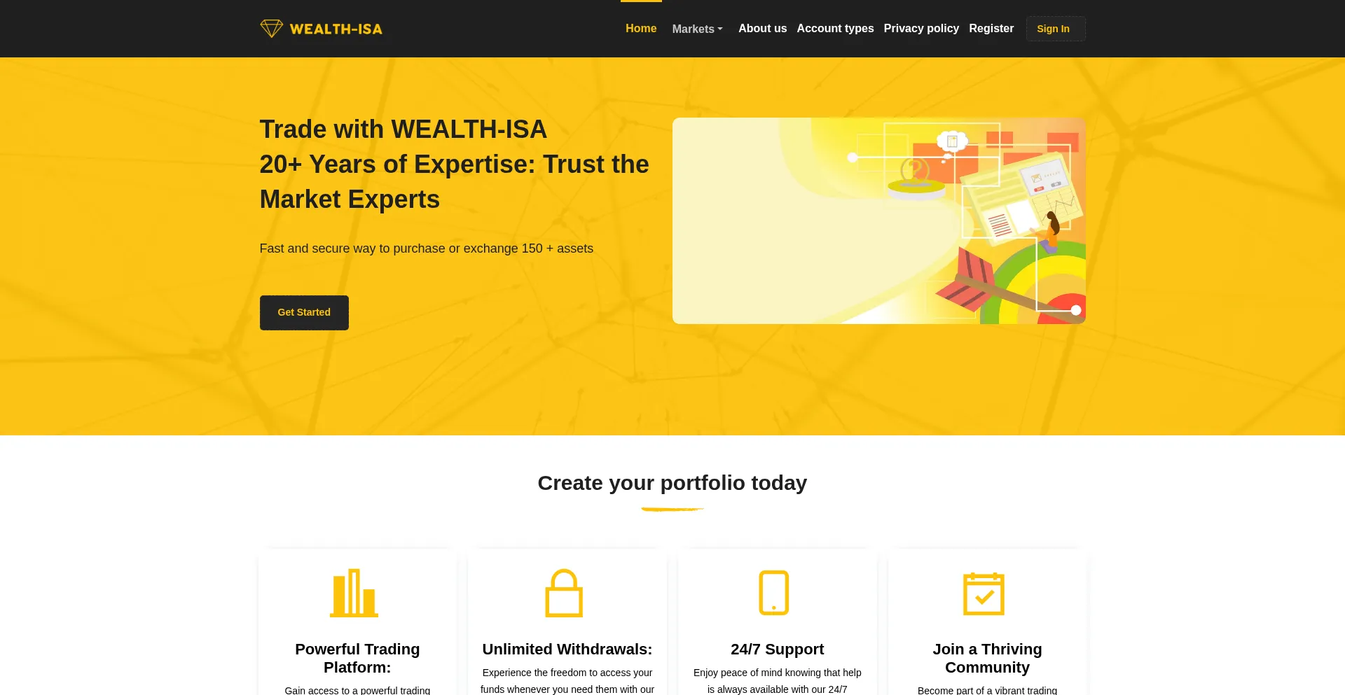 该网站实现数据收集表单,请求个人信息,包括姓名、电子邮件地址、电话号码或其他敏感详细信息。用户应验证 wealth-isa.cc 的合法性并在提交个人数据前查看隐私政策。