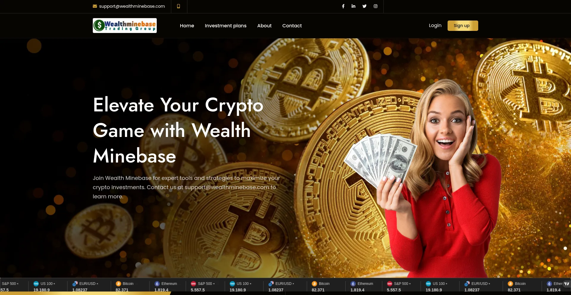 分析显示 wealthminebase.com 显示社交媒体图标或链接,但不连接到合法的社交媒体档案。这种欺骗性做法通常用于创造虚假合法性,代表需要立即谨慎的欺诈意图的重要指标。