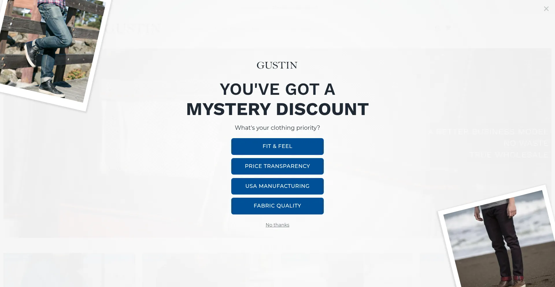 Explore Gustin's collection of premium quality denim and clothing for men. Shop for jeans, shirts, knits, and accessories that are American-made and affordable.