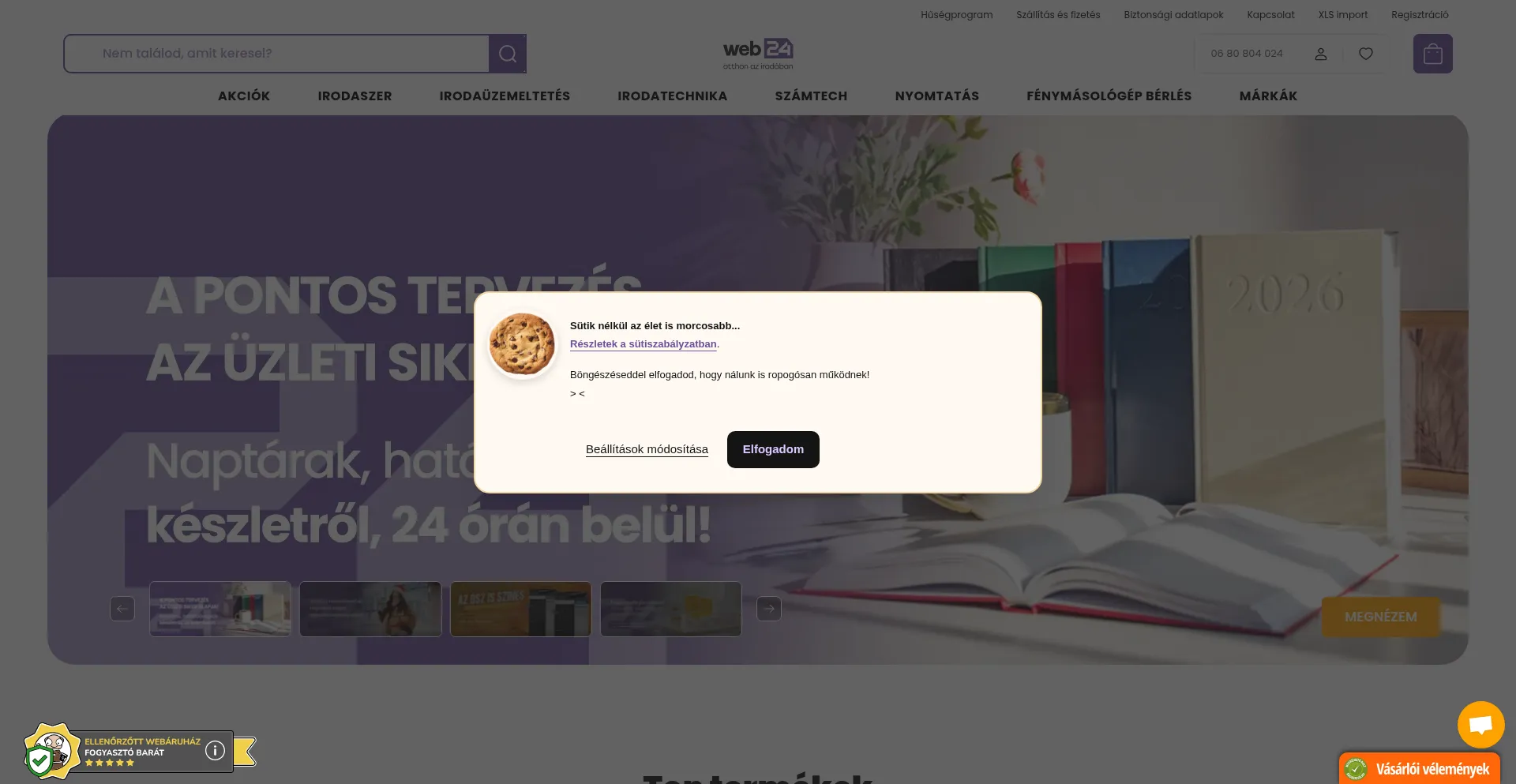 Irodaszerek, másolópapírok, irodatechnikai termékek, nyomtató kellékanyagok, irodaüzemeltetési termékek széles választékát éred el webáruházunkban.
