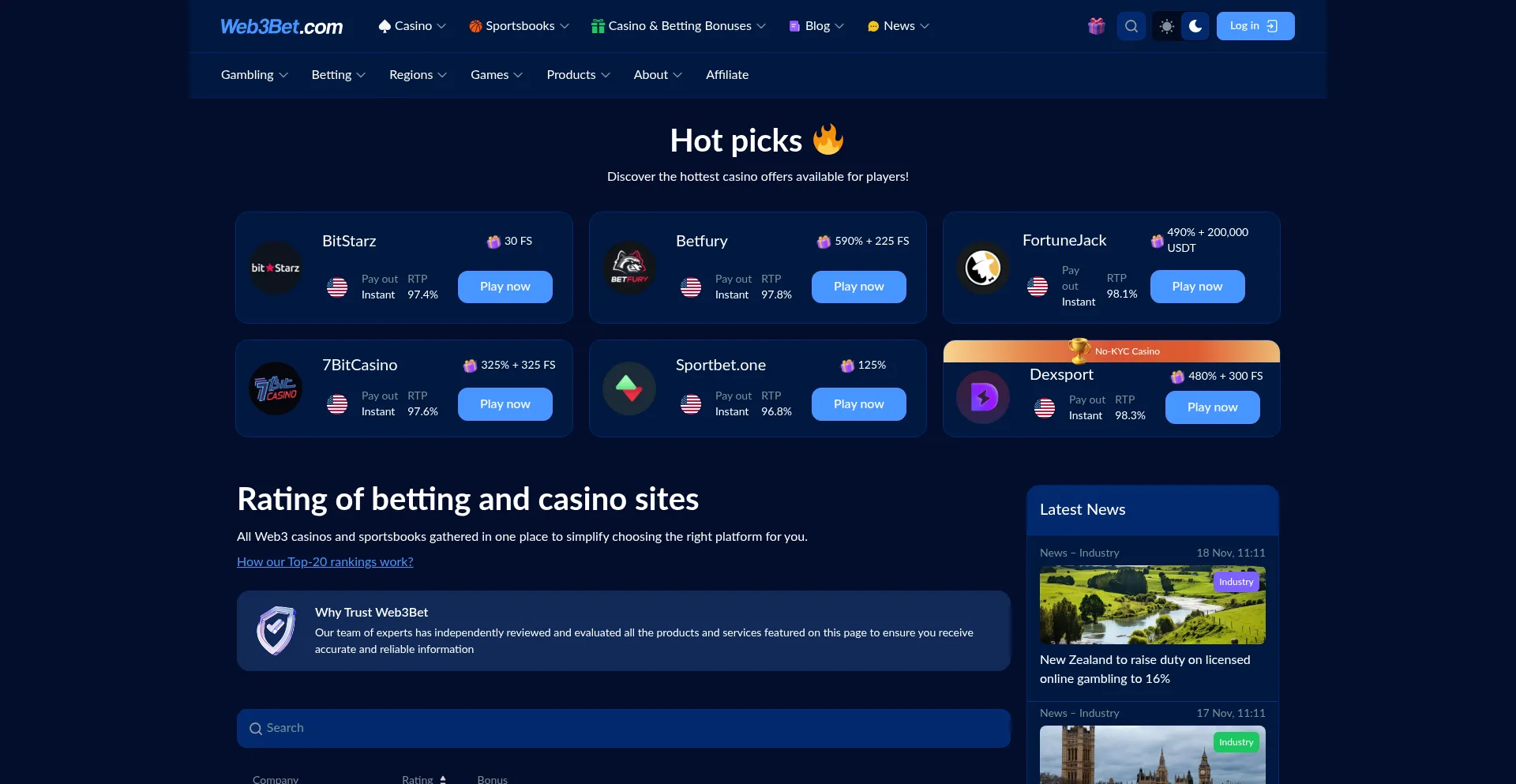 All about Web3 betting and casino platforms. The most honest rating of blockchain sportsbooks and casinos. Come and choose the best!