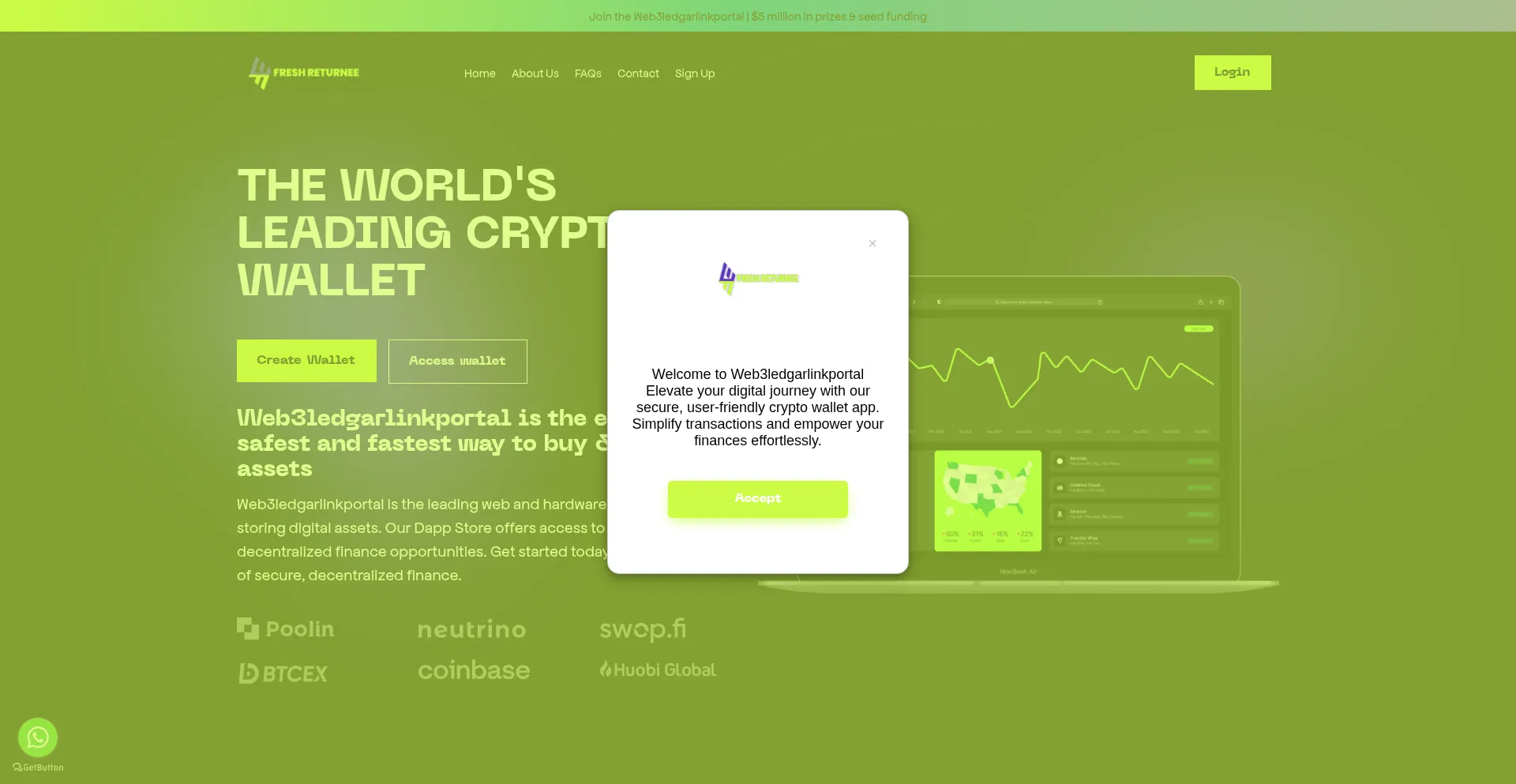 网站 web3ledgarlinkportal.com 被配置为一个带有移动应用功能的网络应用。用户可以直接将该网站安装到设备的桌面上,以快速访问并享受类似移动应用的体验。