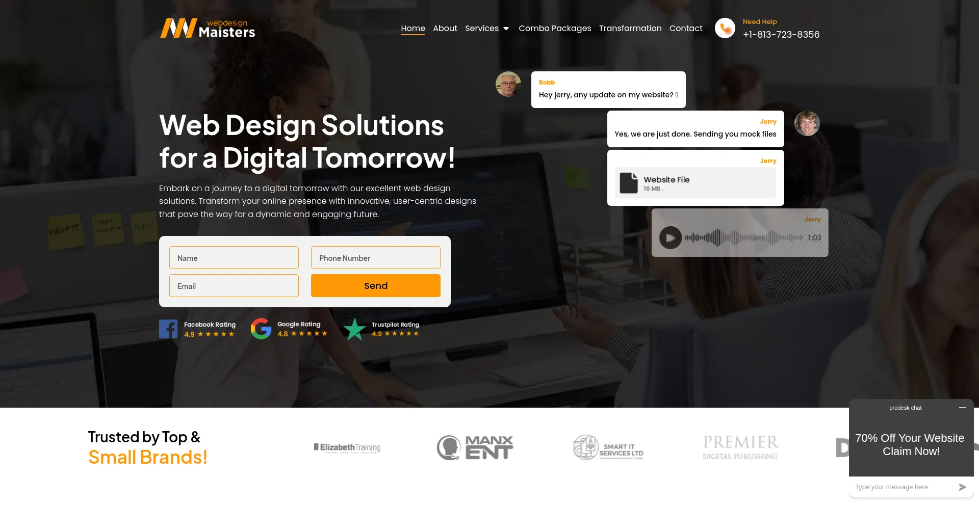 该网站实现数据收集表单,请求个人信息,包括姓名、电子邮件地址、电话号码或其他敏感详细信息。用户应验证 webdesignmaisters.com 的合法性并在提交个人数据前查看隐私政策。