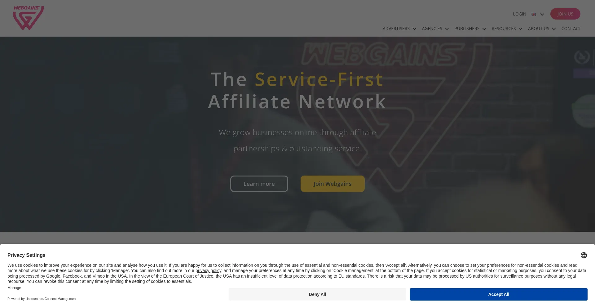 Home | WEBGAINS | THE SERVICE FIRST AFFILIATE NETWORK