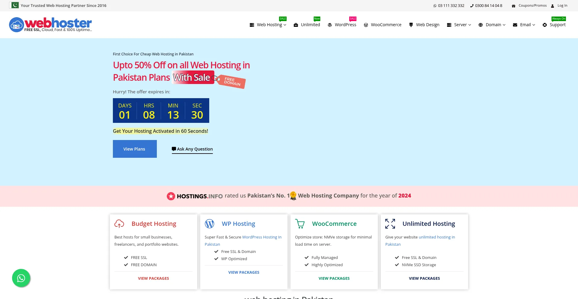WebHoster No.1 to provide web hosting in pakistan also offering domain hosting in pakistan since 2009 with low-cost hosting packages.