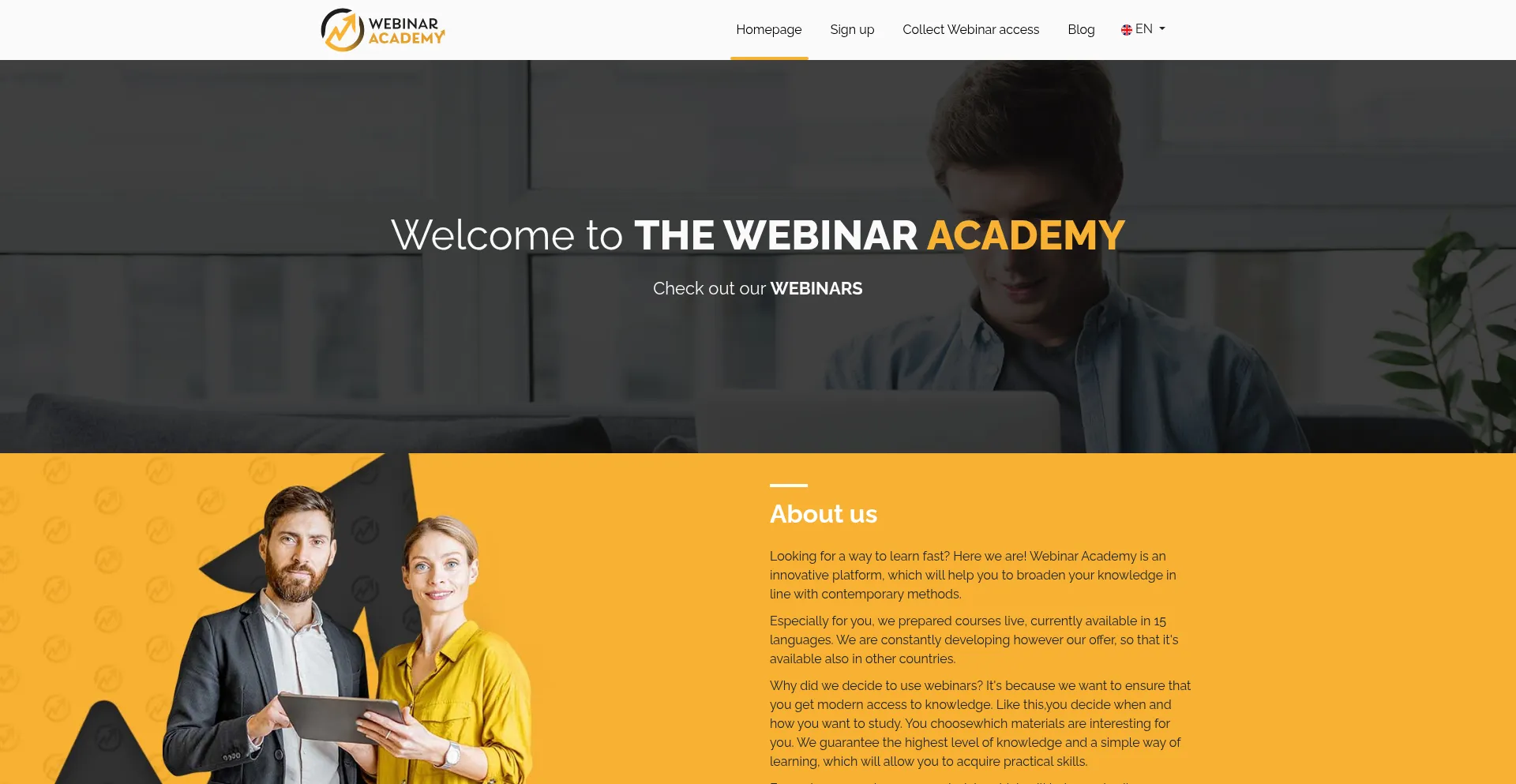 webinaracademy.center 使用 Bootstrap,这是一个广泛采用的开源响应式网页开发框架。Bootstrap 通过标准化组件和样式实现移动友好界面的高效创建。