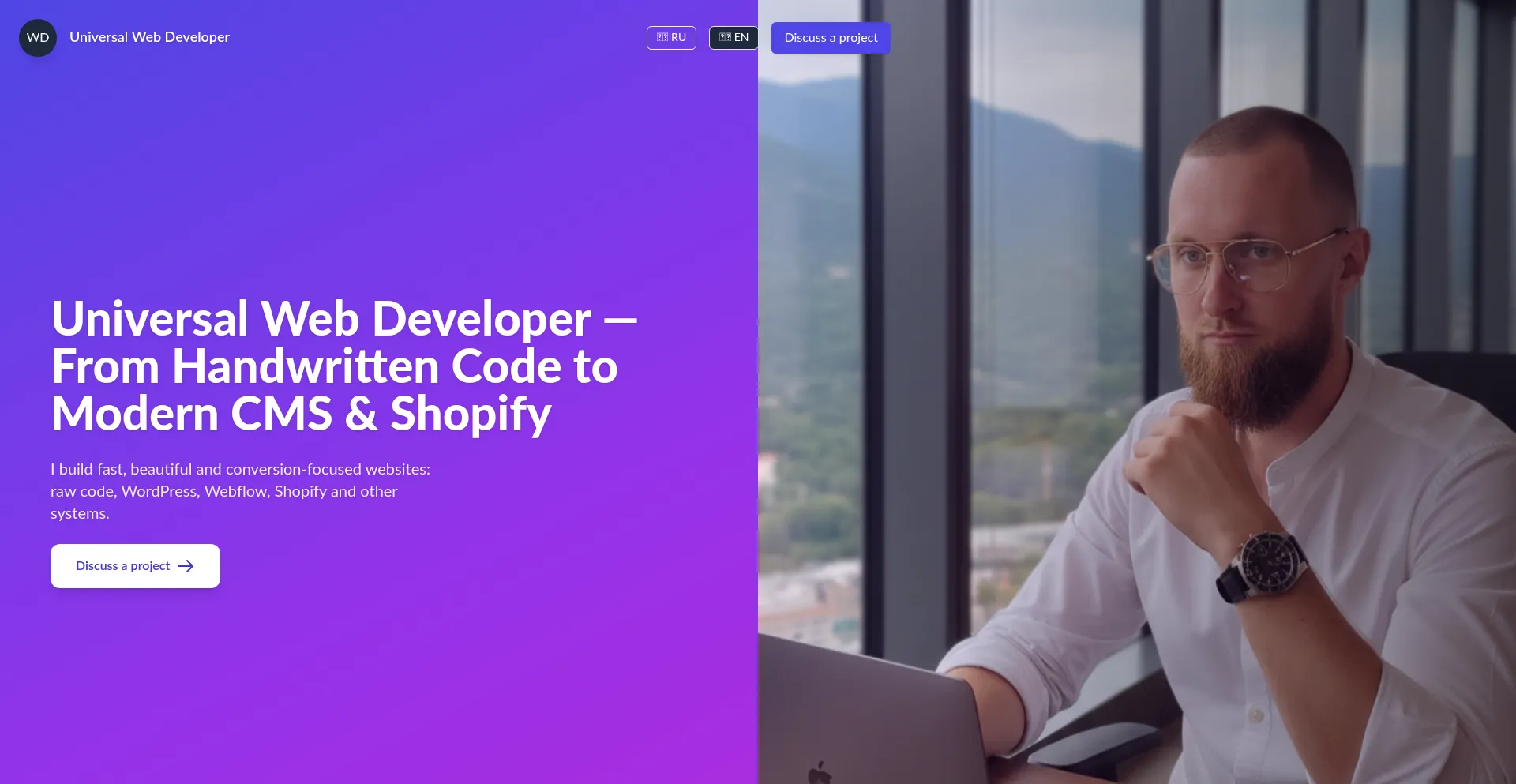 I build fast, beautiful and conversion-focused websites: raw code, WordPress, Webflow, Shopify and other systems.