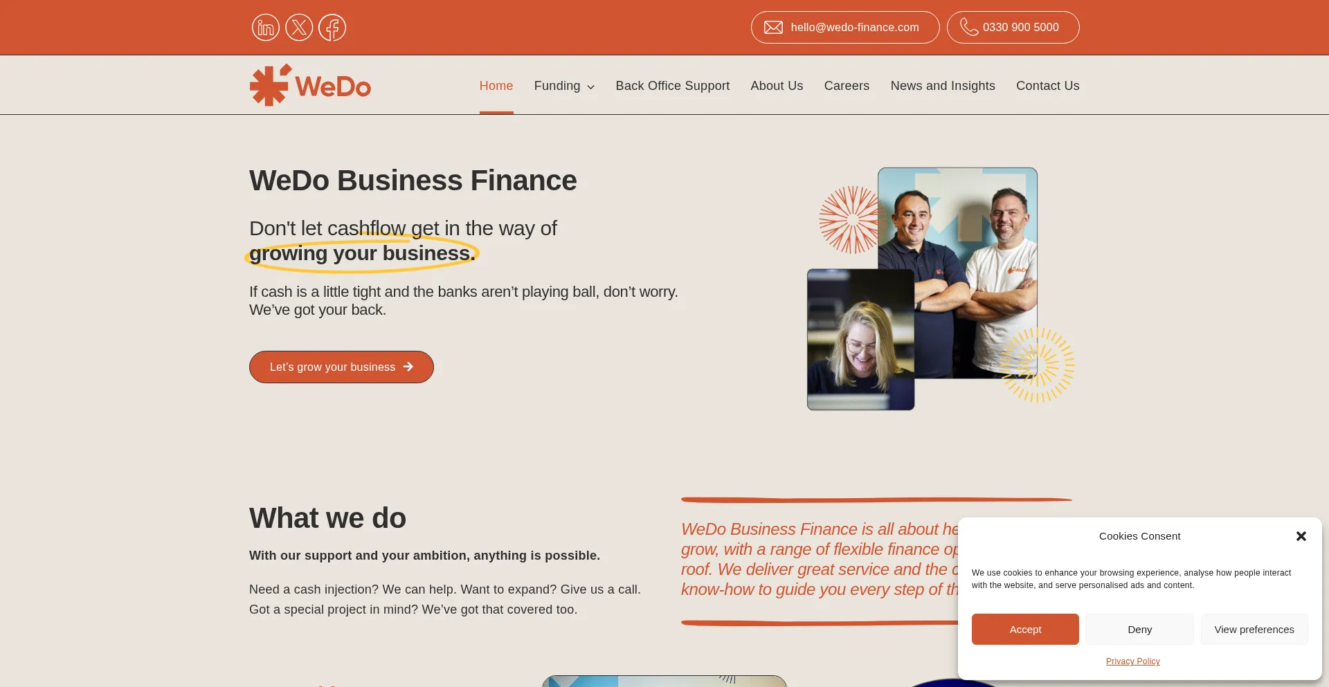 WeDo Business Finance are experts in helping SMEs grow. We're a seamless funding partner, providing a range of flexible finance solutions under one roof.
