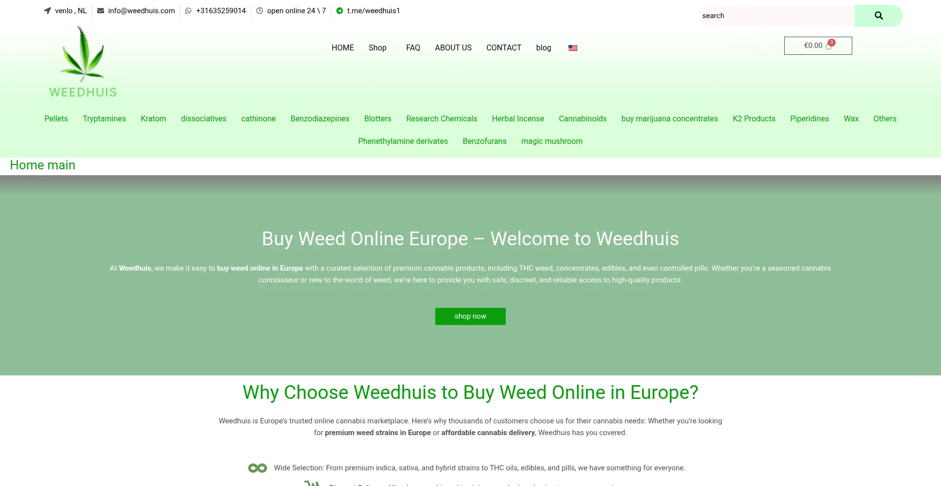 Buy weed online in Europe with Weedhuis. Discover premium cannabis products, THC edibles, and pills. Enjoy secure and discreet delivery.