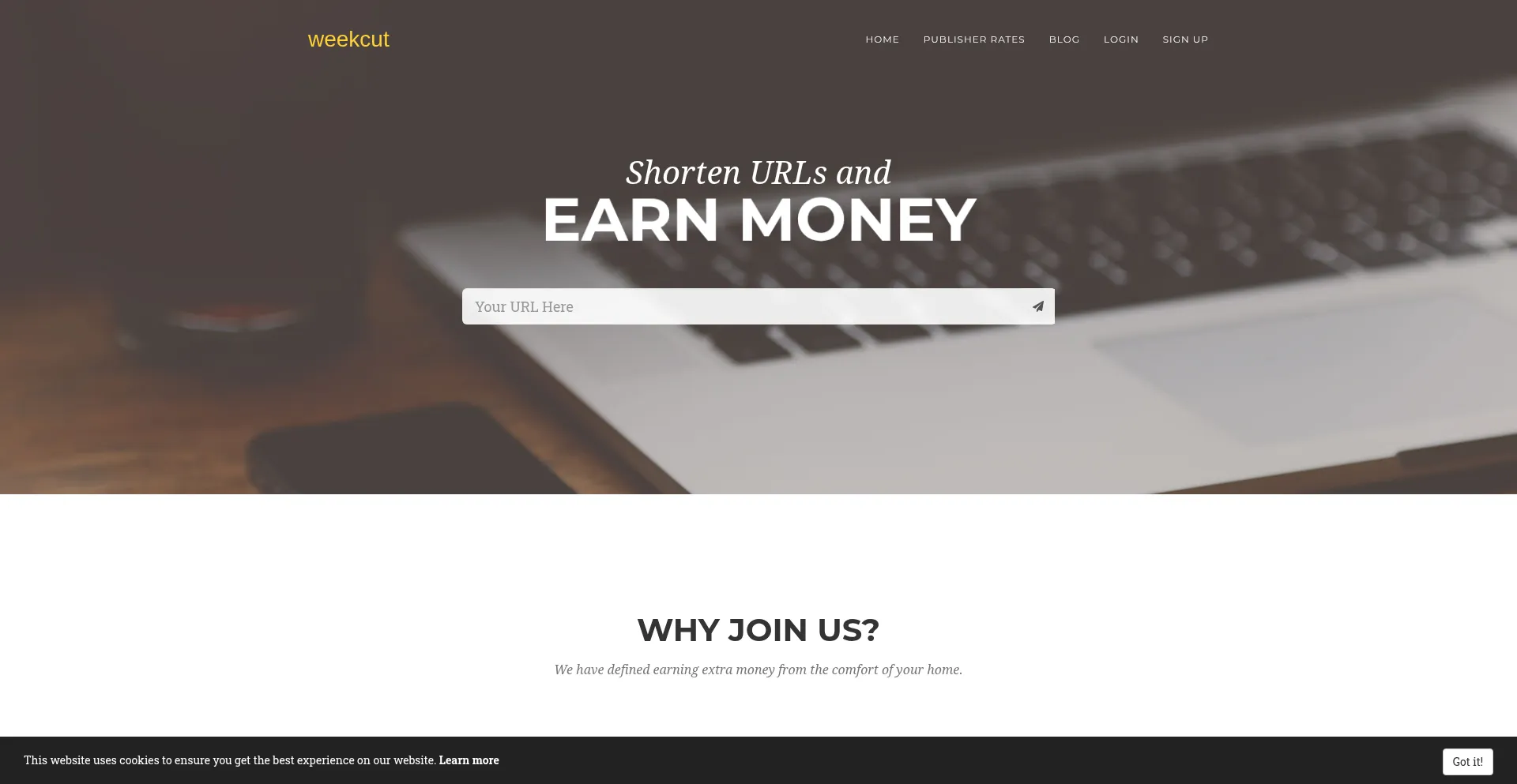 Weekcut Smart URL Shortener to shorten links, share & earn effortlessly. Enjoy high CPM rates, precise GEO targeting, and powerful affiliate tools to maximize your income. Start...