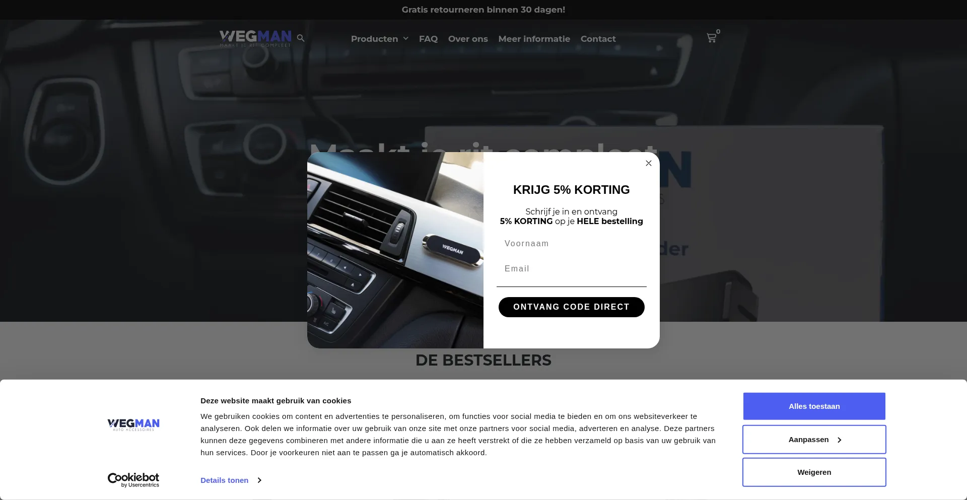 该网站实现符合GDPR或CCPA等隐私法规的cookie同意机制。这表明 wegmanshop.nl 遵守数据保护标准并为用户提供对个人数据收集实践的控制。