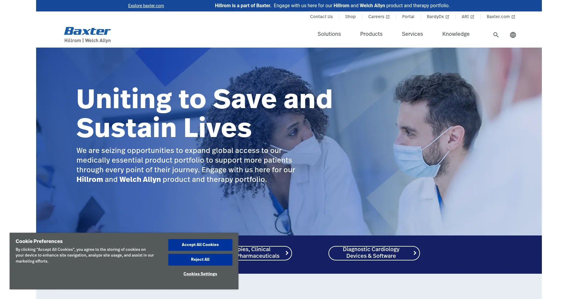 网站 welchallyn.com 使用 React 构建,这是一个用于创建交互式用户界面的流行 JavaScript 库。