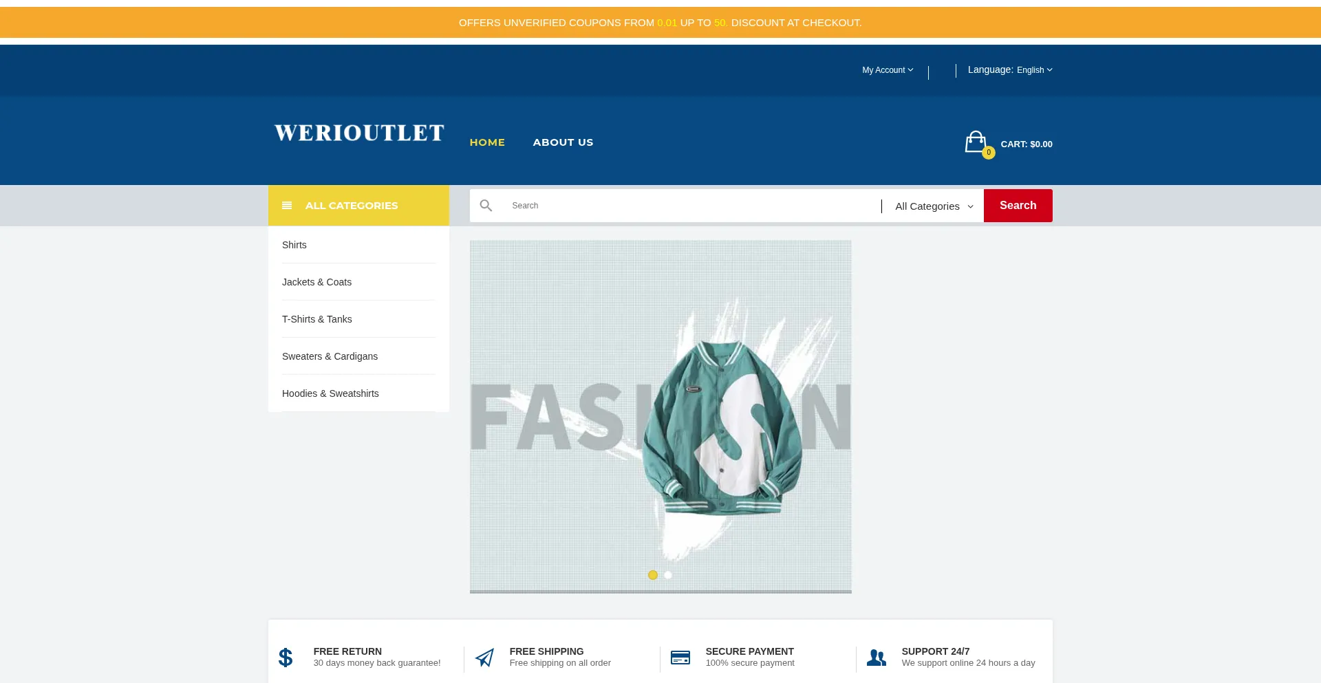 werioutlet.com 使用 Bootstrap,这是一个广泛采用的开源响应式网页开发框架。Bootstrap 通过标准化组件和样式实现移动友好界面的高效创建。