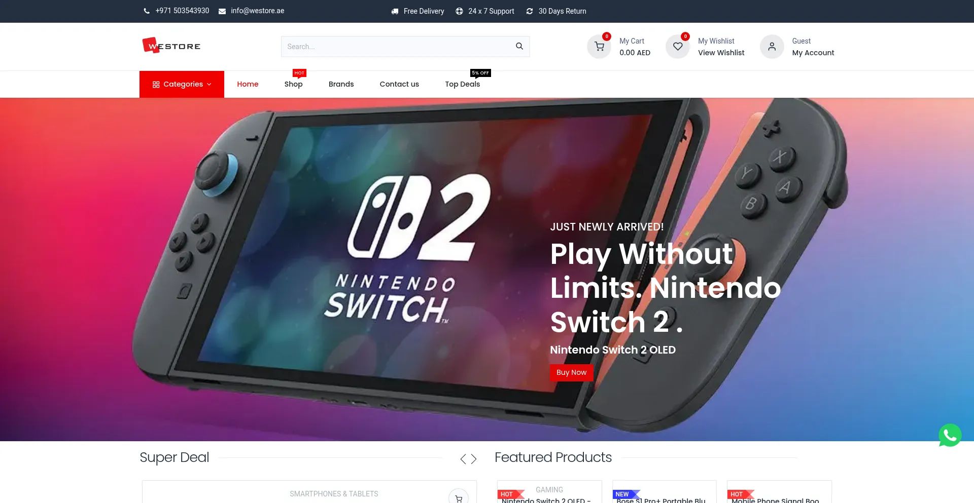 分析表明 westore.ae 作为电子商务平台运营,促进商品或服务的在线交易。该网站实现了购物车功能、支付处理系统和产品目录功能,这些是商业零售运营的典型特征。