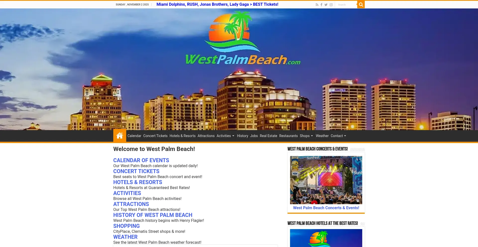 WestPalmBeach.com is your guide to the best West Palm Beach hotels, golf, attractions, shopping, concert tickets, jobs and activities.